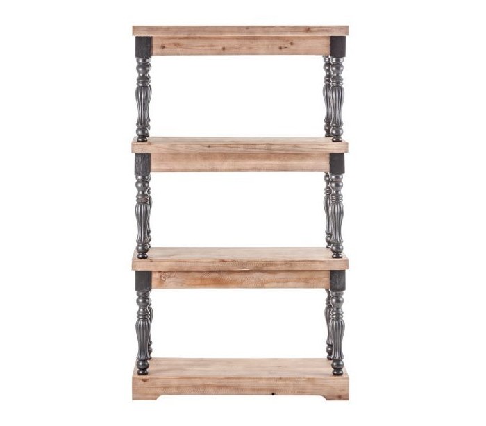 Reol udført i et let antikt design, med stænger i rustikt sortlakeret fyrretræ og hylder i rustikt naturlakeret fyrretræ. Reolen måler 138 cm i højden og 60 x 40 cm i bredde og dybde. Bemærk venligst, at der kán være ujævnheder i lakeringen/malingen, som en del af det rustikke design.