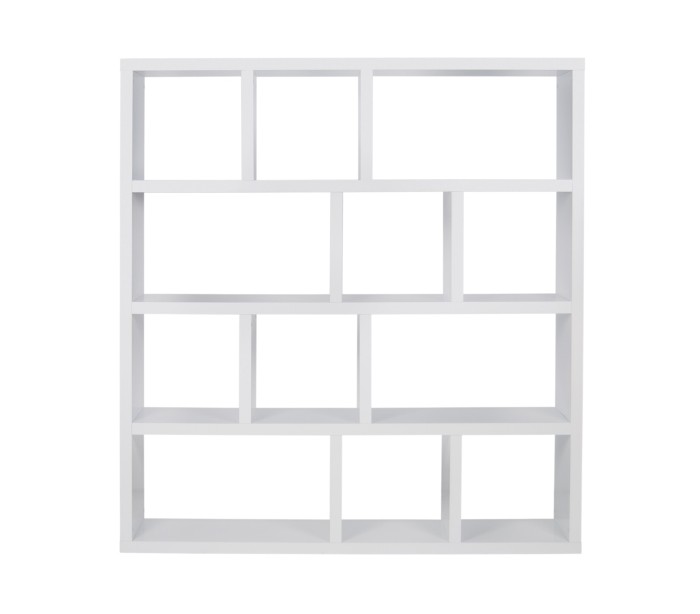 TemaHome Berlin reol/rumdeler, udført i et design af hviddlakeret finér. Reolen måler 159 cm i højden og 150 x 34 cm i bredde og dybde.