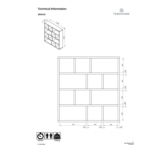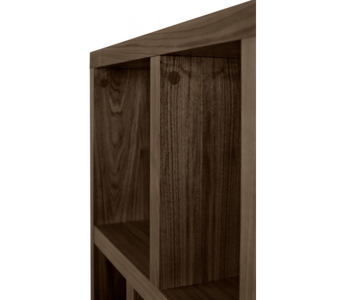 TemaHome Berlin reol/rumdeler, udført i et design af valnøddefarvet finér. Reolen måler 159 cm i højden og 150 x 34 cm i bredde og dybde.