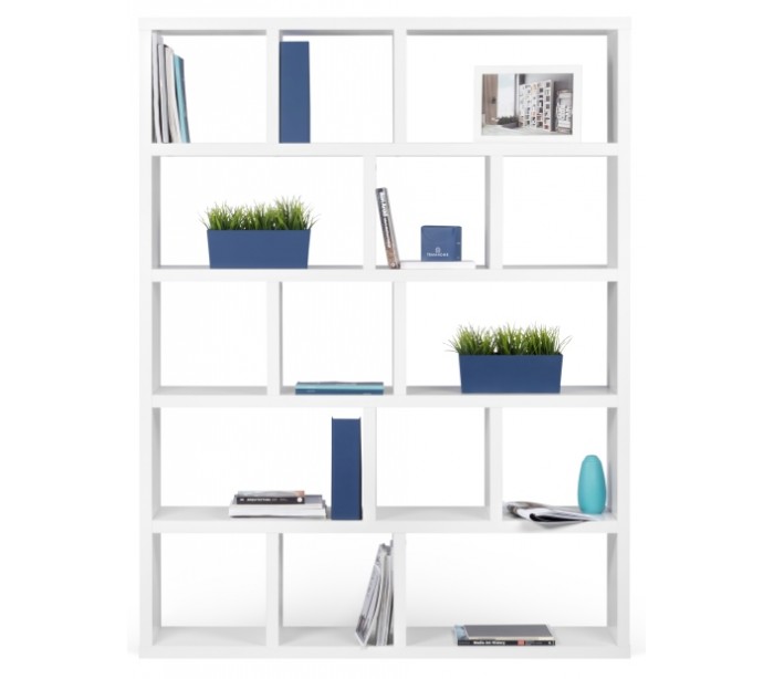 TemaHome Berlin reol/rumdeler, udført i et design af hvidlakeret finér. Reolen måler 198 cm i højden og 150 x 34 cm i bredde og dybde.