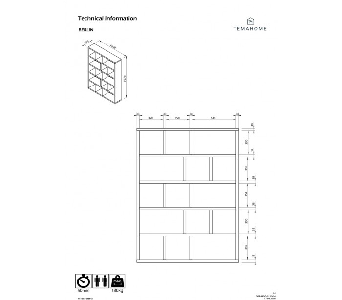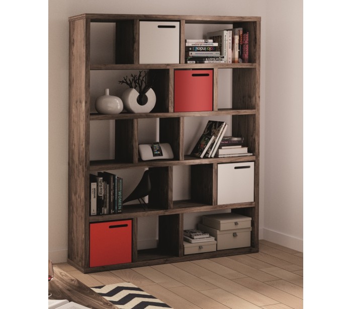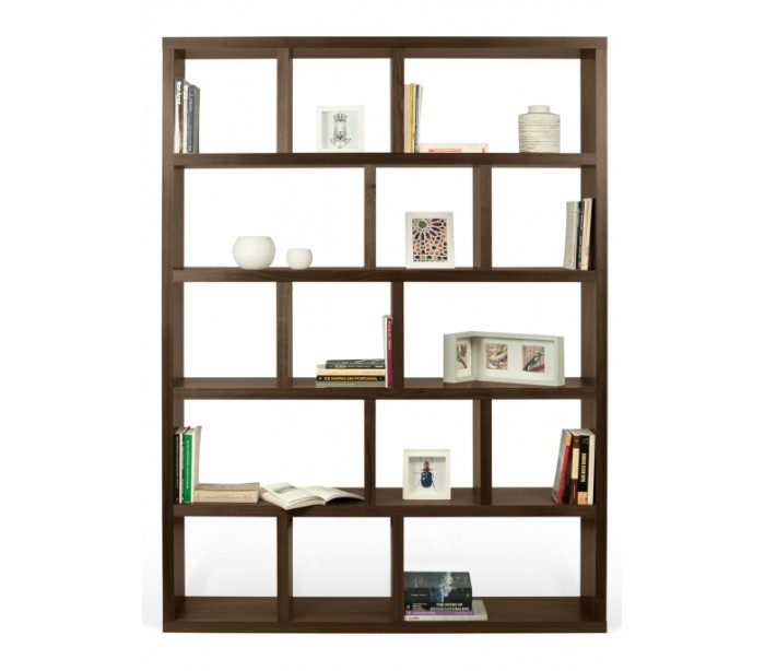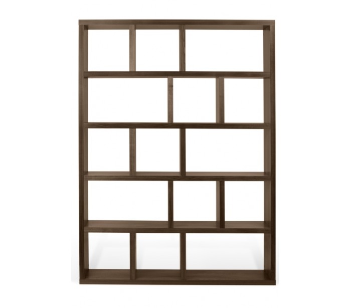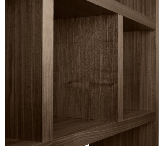 TemaHome Berlin reol/rumdeler, udført i et design af valnøddefarvet finér. Reolen måler 198 cm i højden og 150 x 34 cm i bredde og dybde.