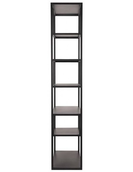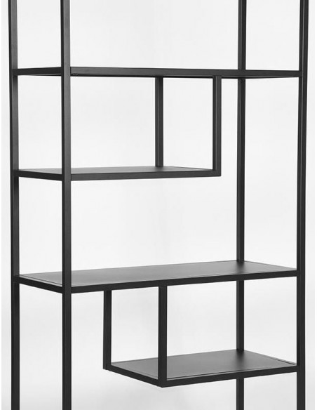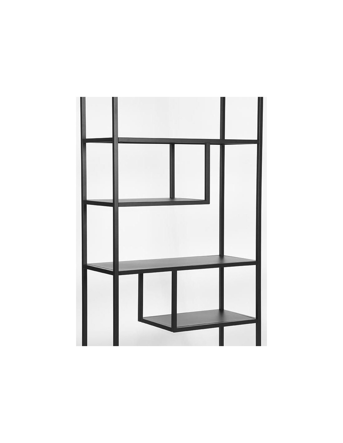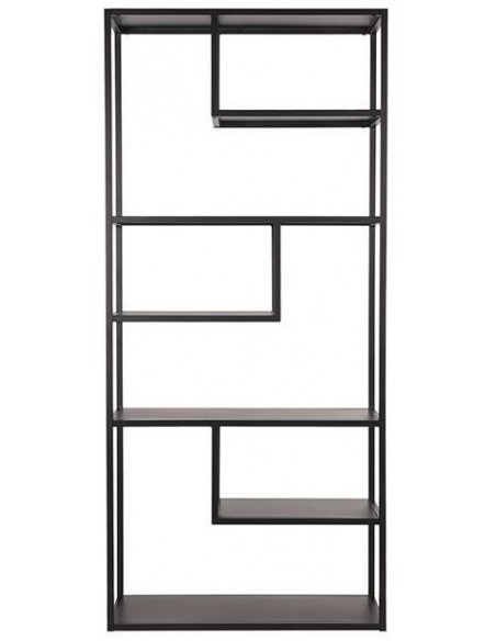 Reol udført i et industrielt design, fremstillet i industrielt sortlakeret metal. Reolen indeholder hylderum i forskellige mål. Reolen måler 188 cm i højden og 85 x 35 cm i bredde og dybde.