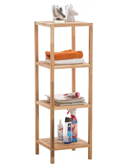 Reol med 4 hylder, udført i et design af naturtræ. Reolen måler 112 cm i højden og 36 x 36 cm i bredde og dybde.