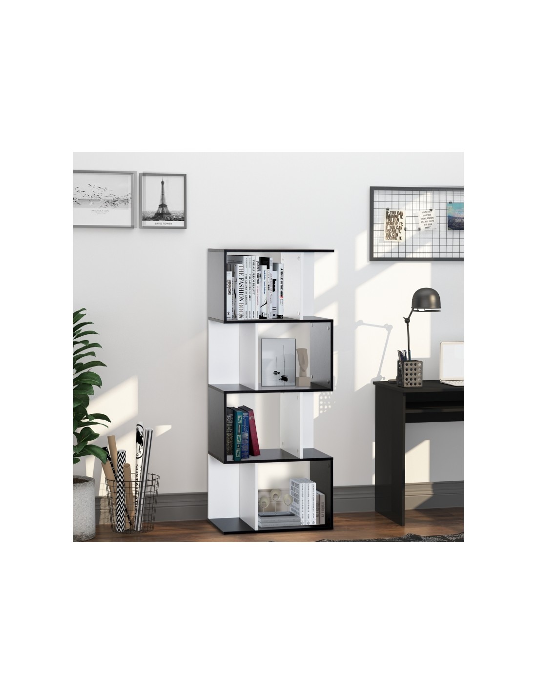 Bogreol i møbelplade H148 x B60 cm - Hvid/Sort
