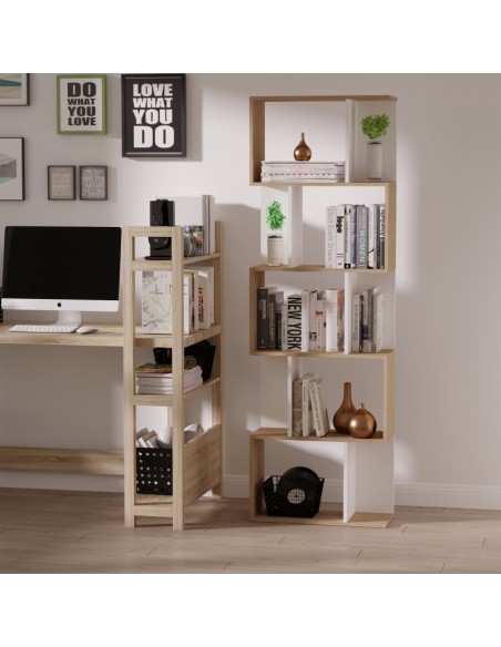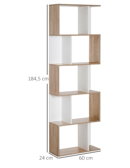 Bogreol i møbelplade H184,5 x B60 cm - Hvid/Natur