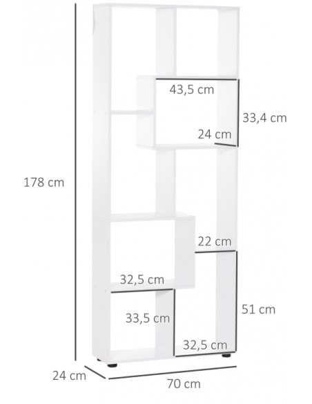 Reol udført i et design af møbelplade. Reolen måler 70 x 24 cm i bredde og dybde og 178 cm i højden.