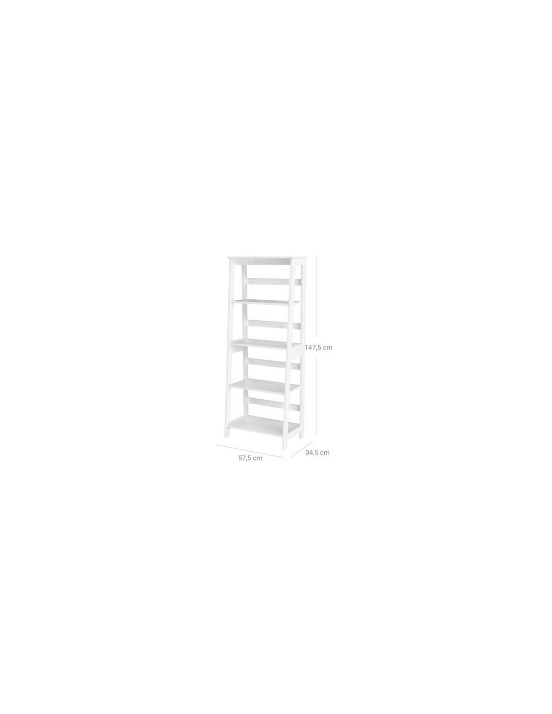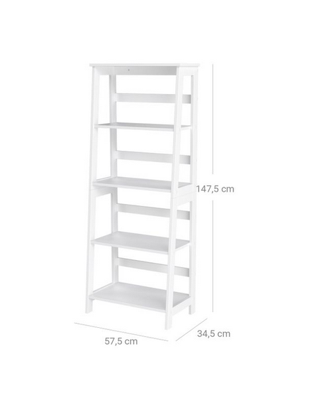 Reol udført i et design af hvidlakeret mdf. Reolen måler 147,5 cm i højden og 57,5 x 34,5 cm i bredde og dybde.