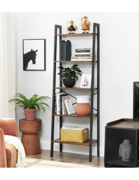 Reol i metal og møbelplade H172 x B66 cm - Sort/Brun