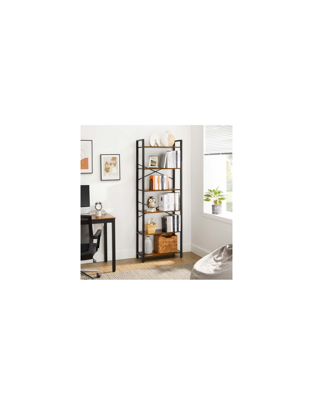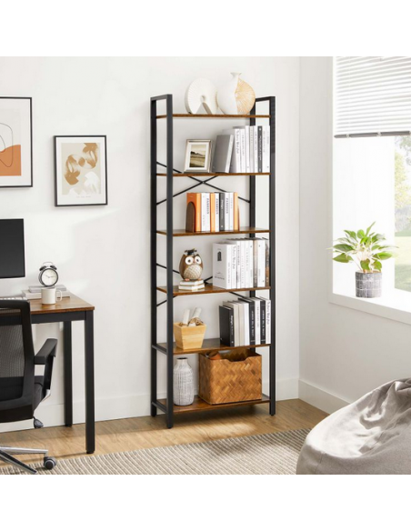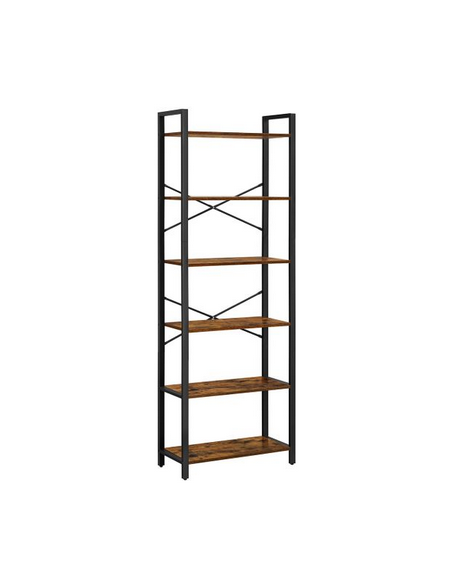 Bogreol i metal og møbelplade H186 x B66 cm - Sort/Brun