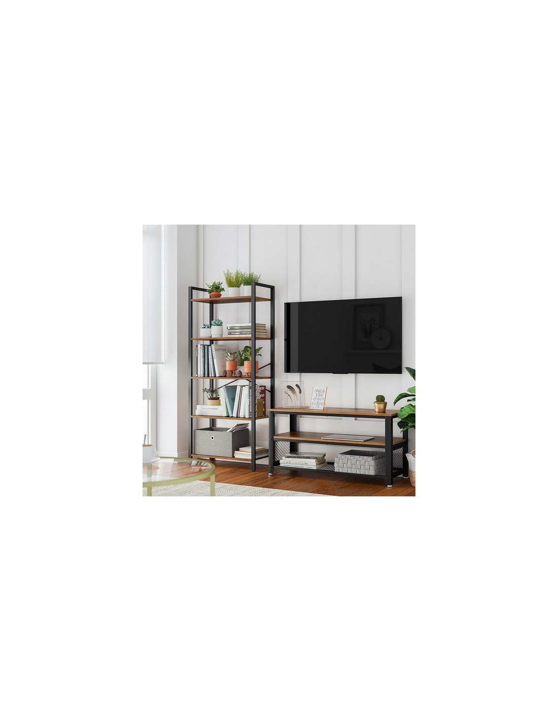 Bogreol i metal og møbelplade H153 x B66 cm - Sort/Brun