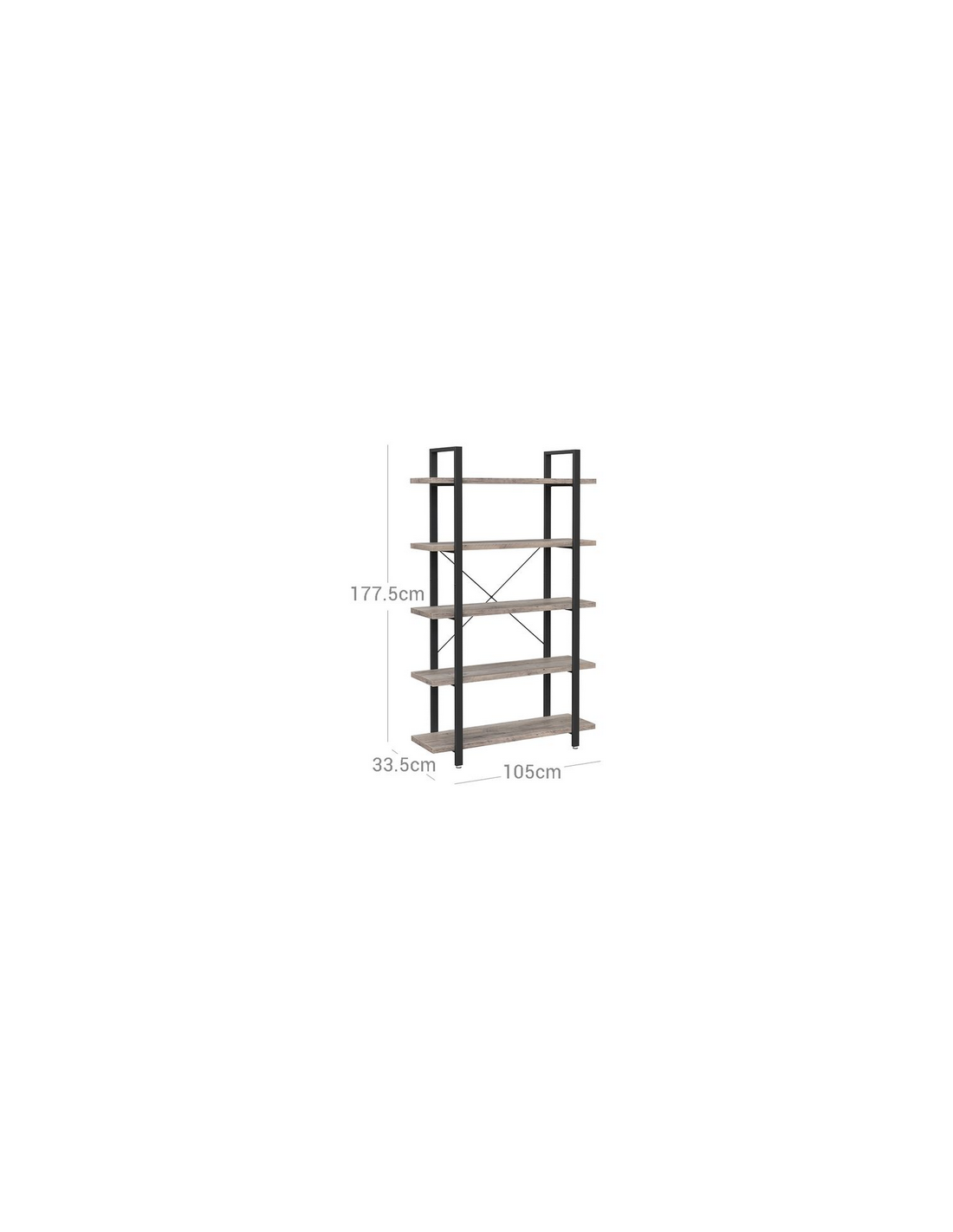 Bogreol i metal og møbelplade H177,5 x B105 cm - Sort/Grå