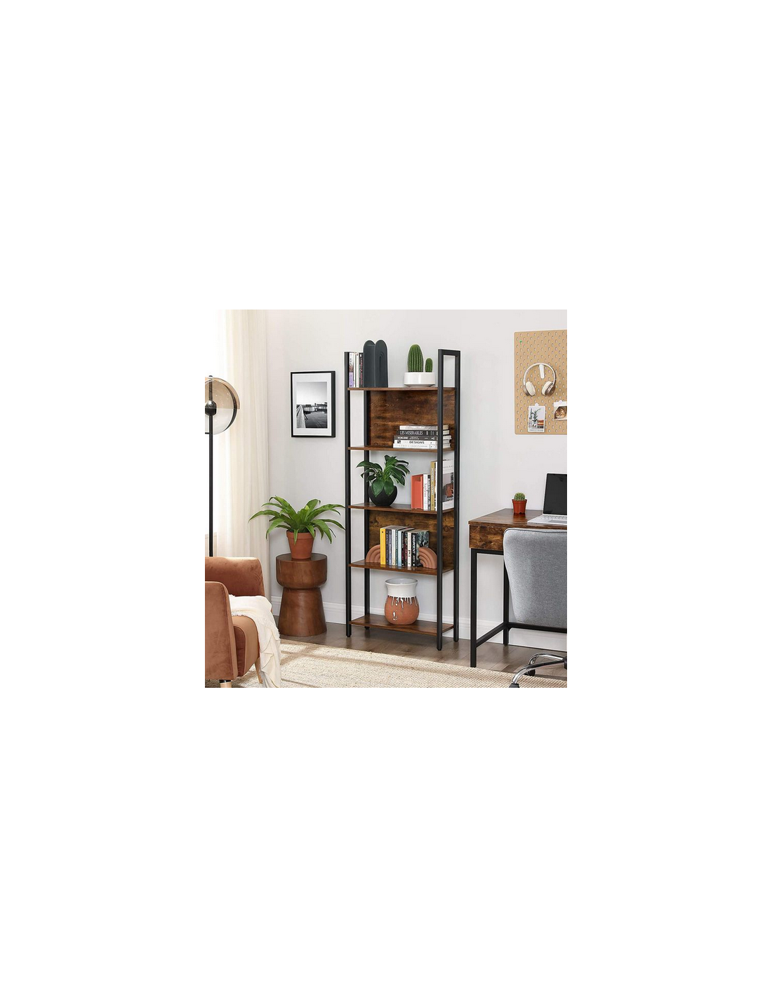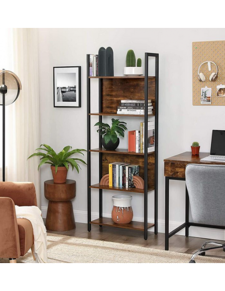 Bogreol i metal og møbelplade H165 x B62 cm - Sort/Brun