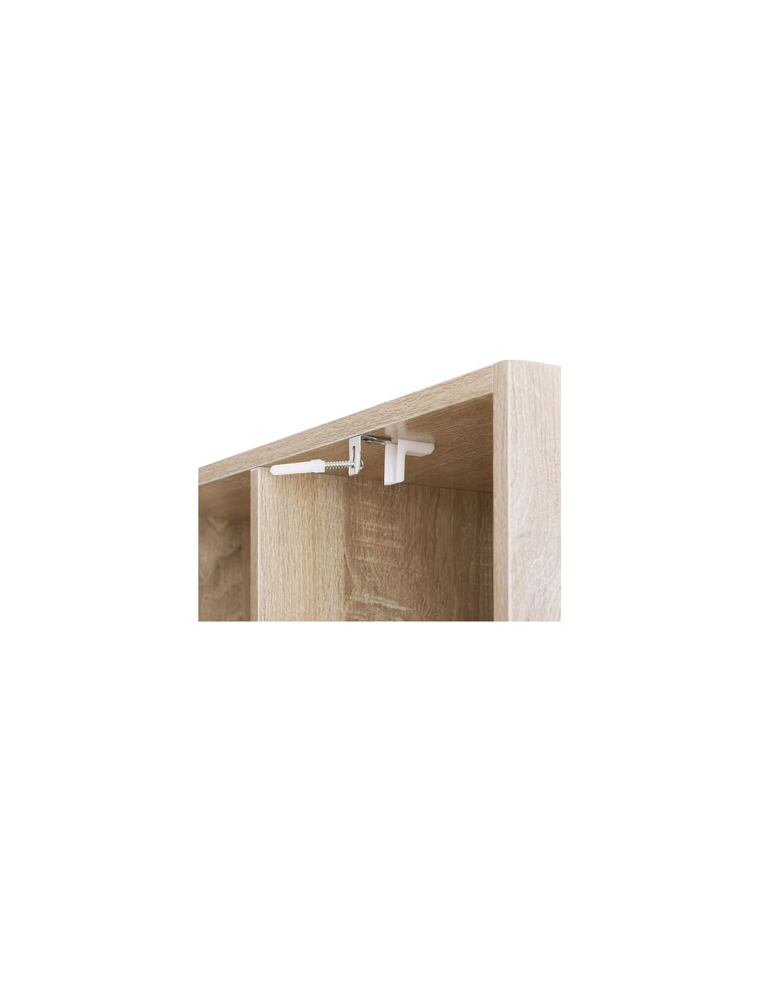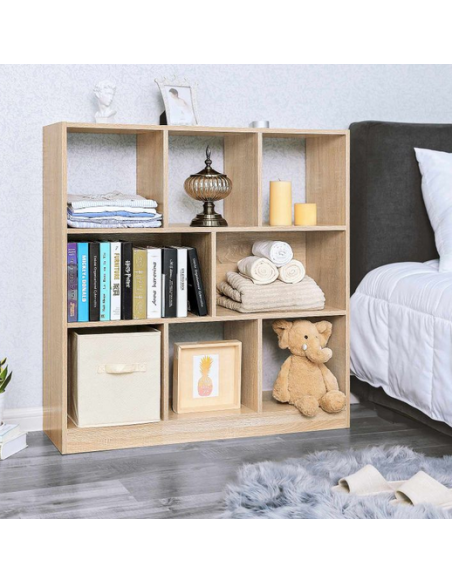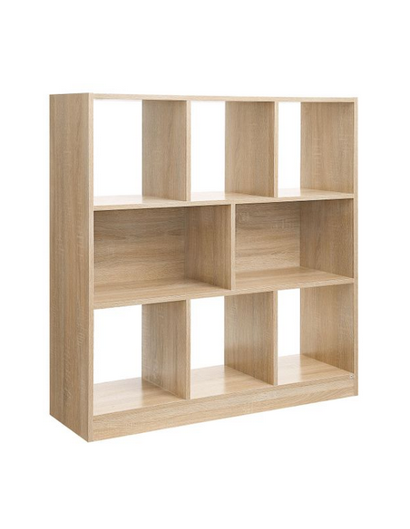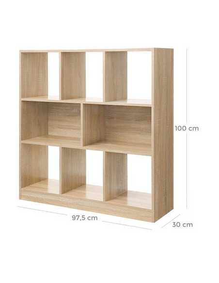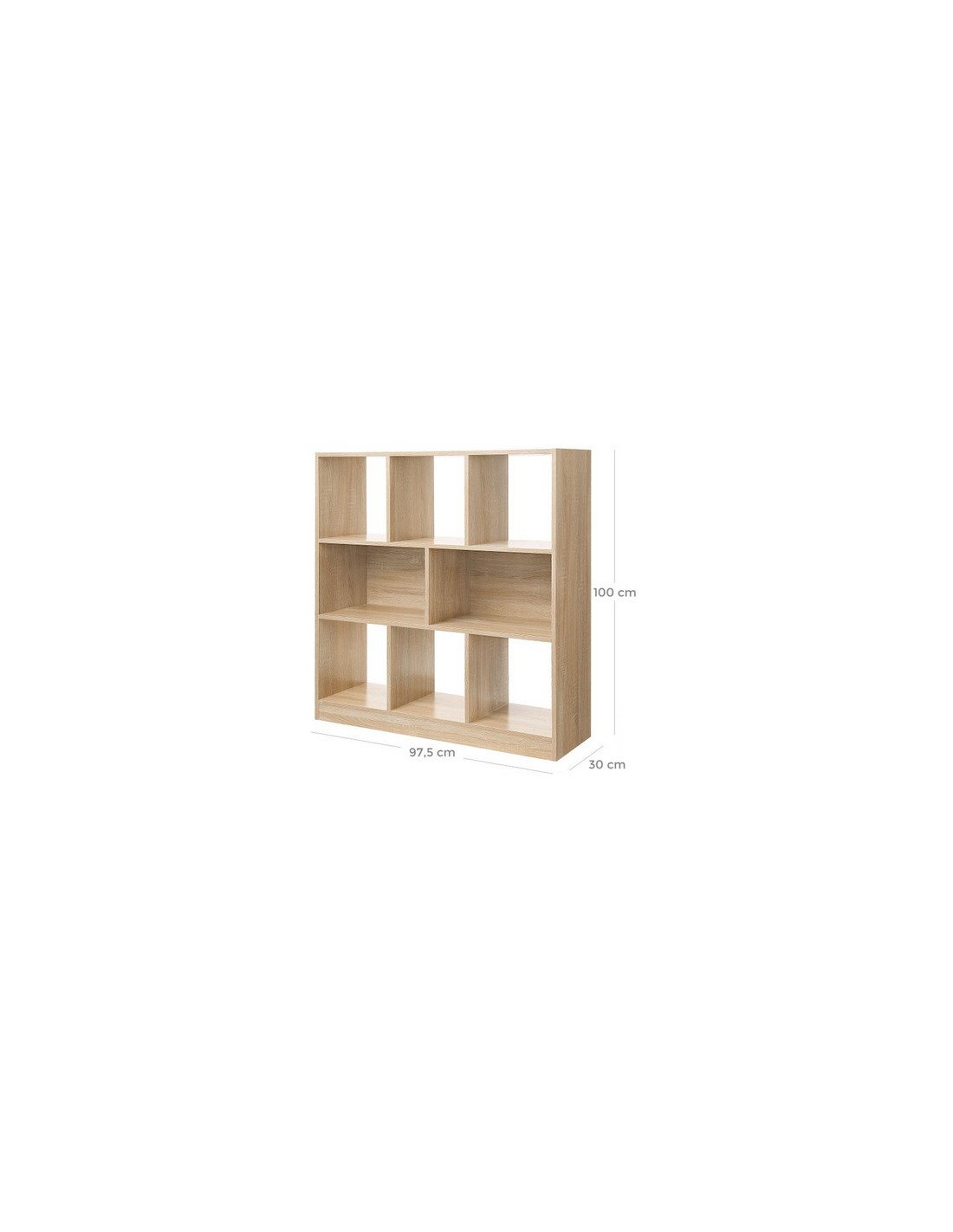 Reol udført i et design af naturfarvet møbelplade. Reolen måler 100 cm i højden og 97,5 x 30 cm i bredde og dybde.