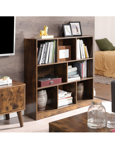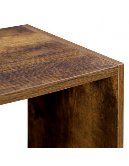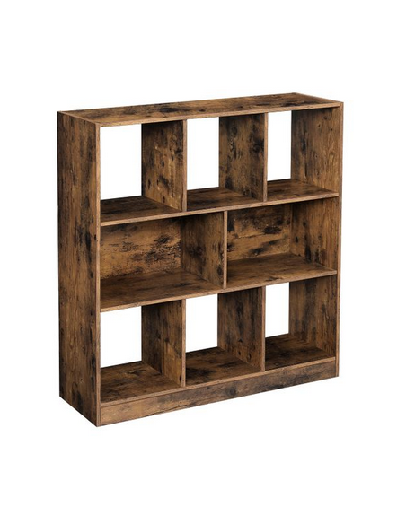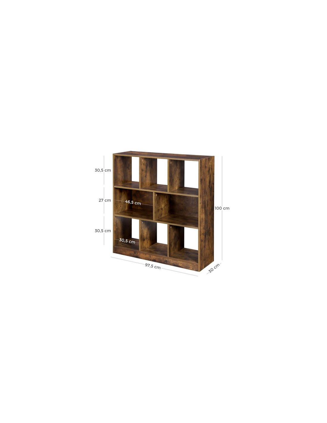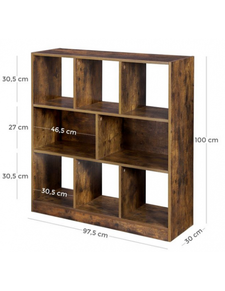 Reol udført i et design af brun møbelplade. Reolen måler 100 cm i højden og 97,5 x 30 cm i bredde og dybde.