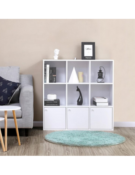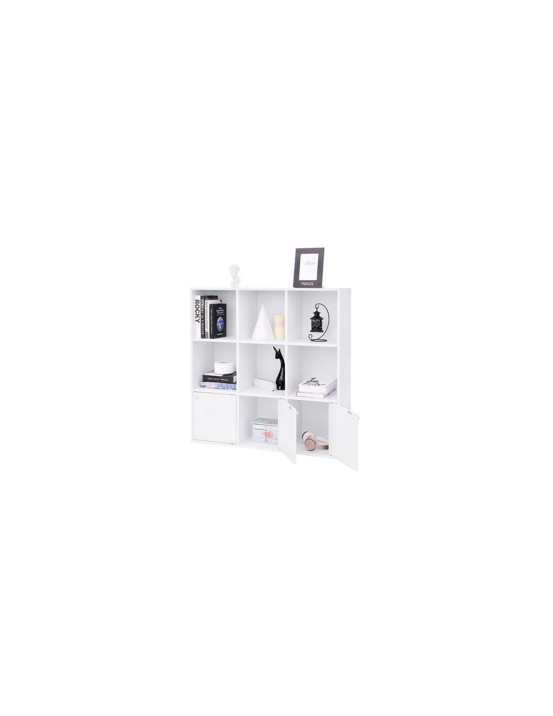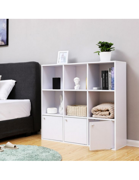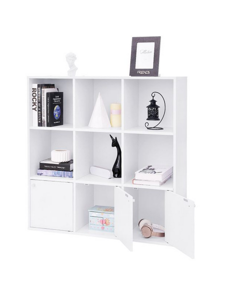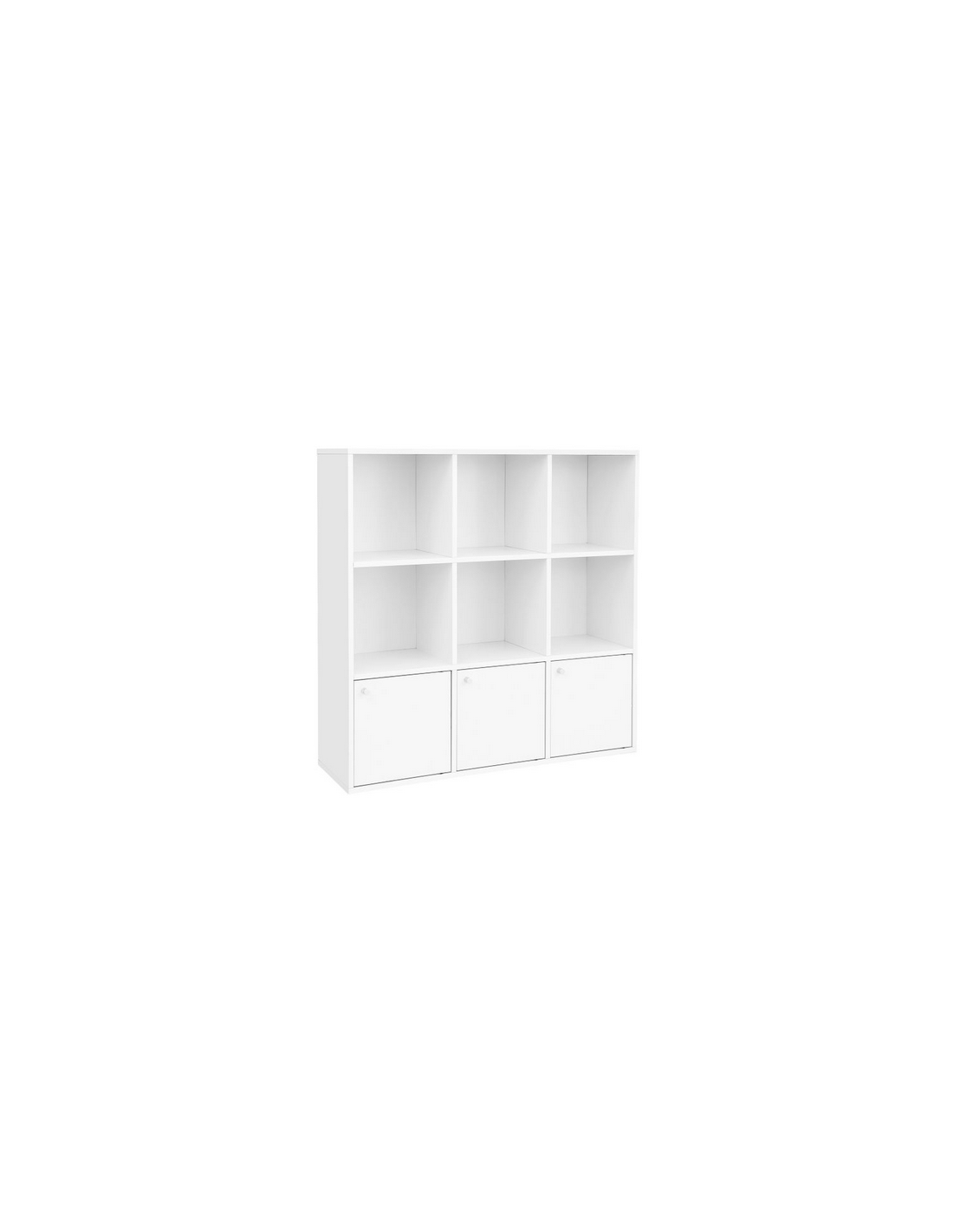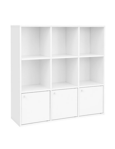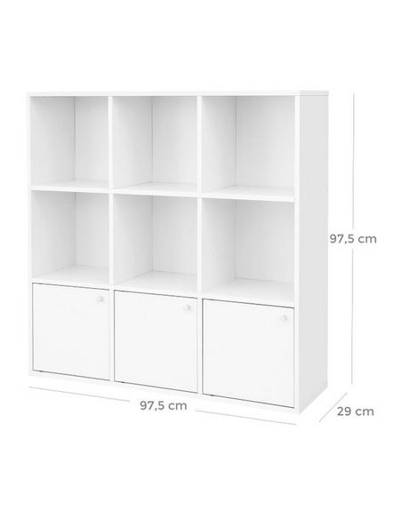 Reol udført i et design af hvid møbelplade. Reolen måler 97,5 cm i højden og 97,5 x 29 cm i bredde og dybde.