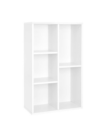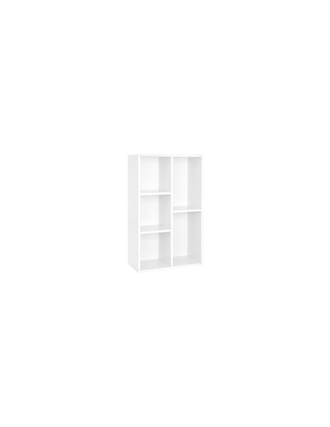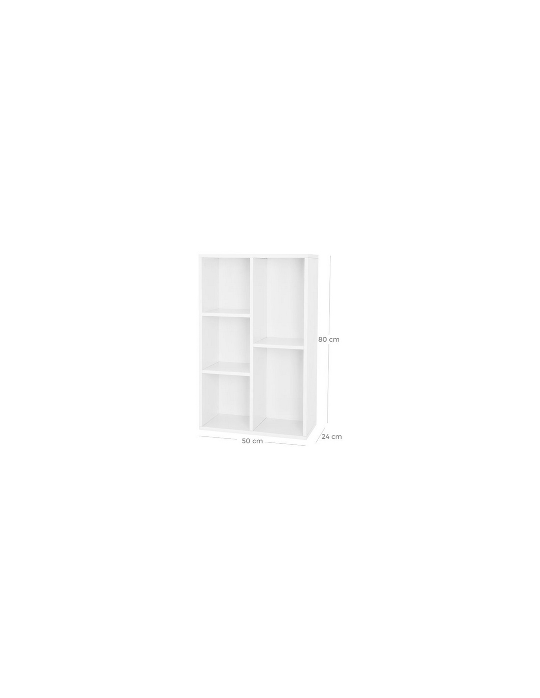 Reol udført i et design af hvid møbelplade. Reolen måler 80 cm i højden og 50 x 24 cm i bredde og dybde.