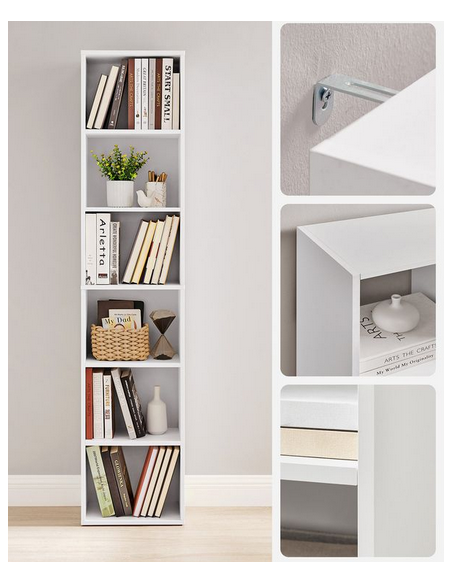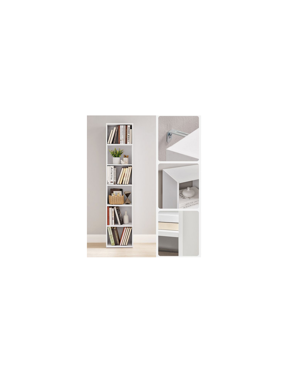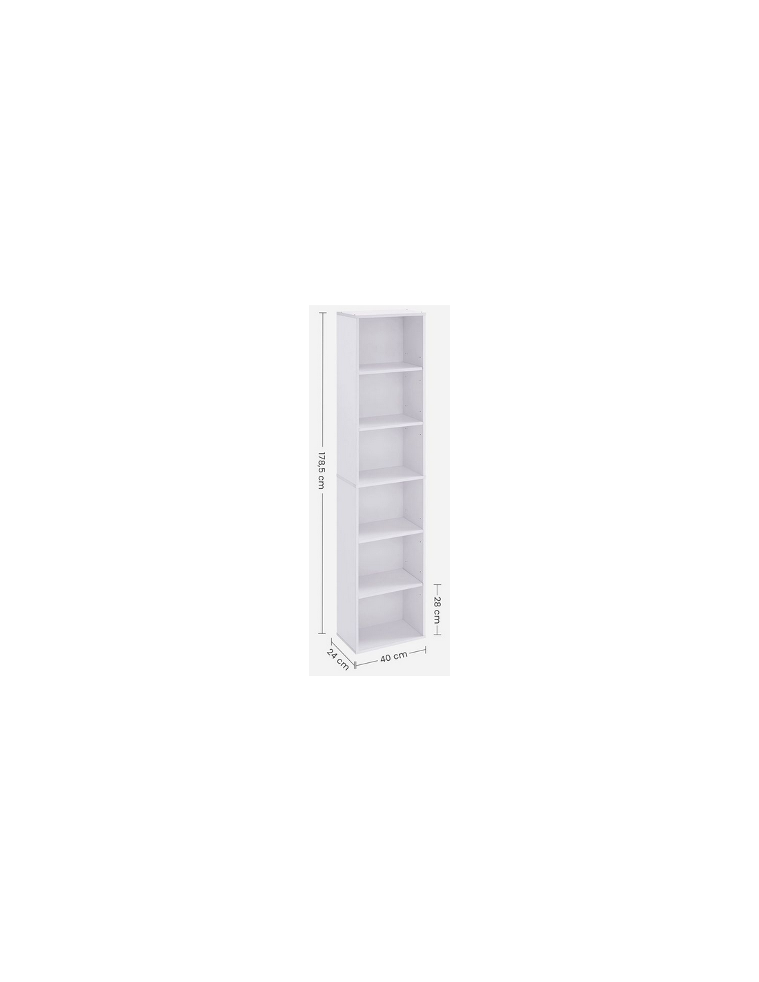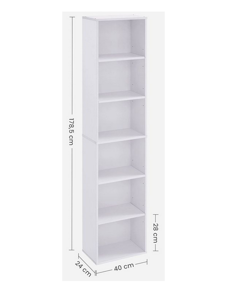Reol udført i et design af hvid møbelplade. Reolen måler 178,5 cm i højden og 40 x 24 cm i bredde og dybde.