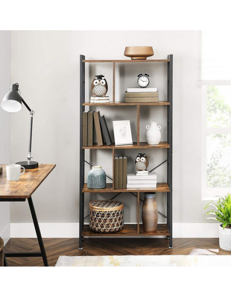 Bogreol i metal og møbelplade H154,4 x B74 cm - Sort/Brun