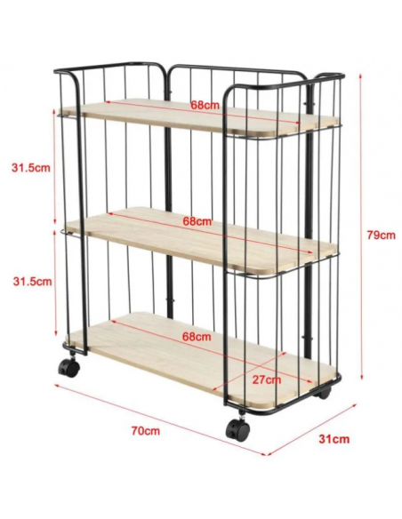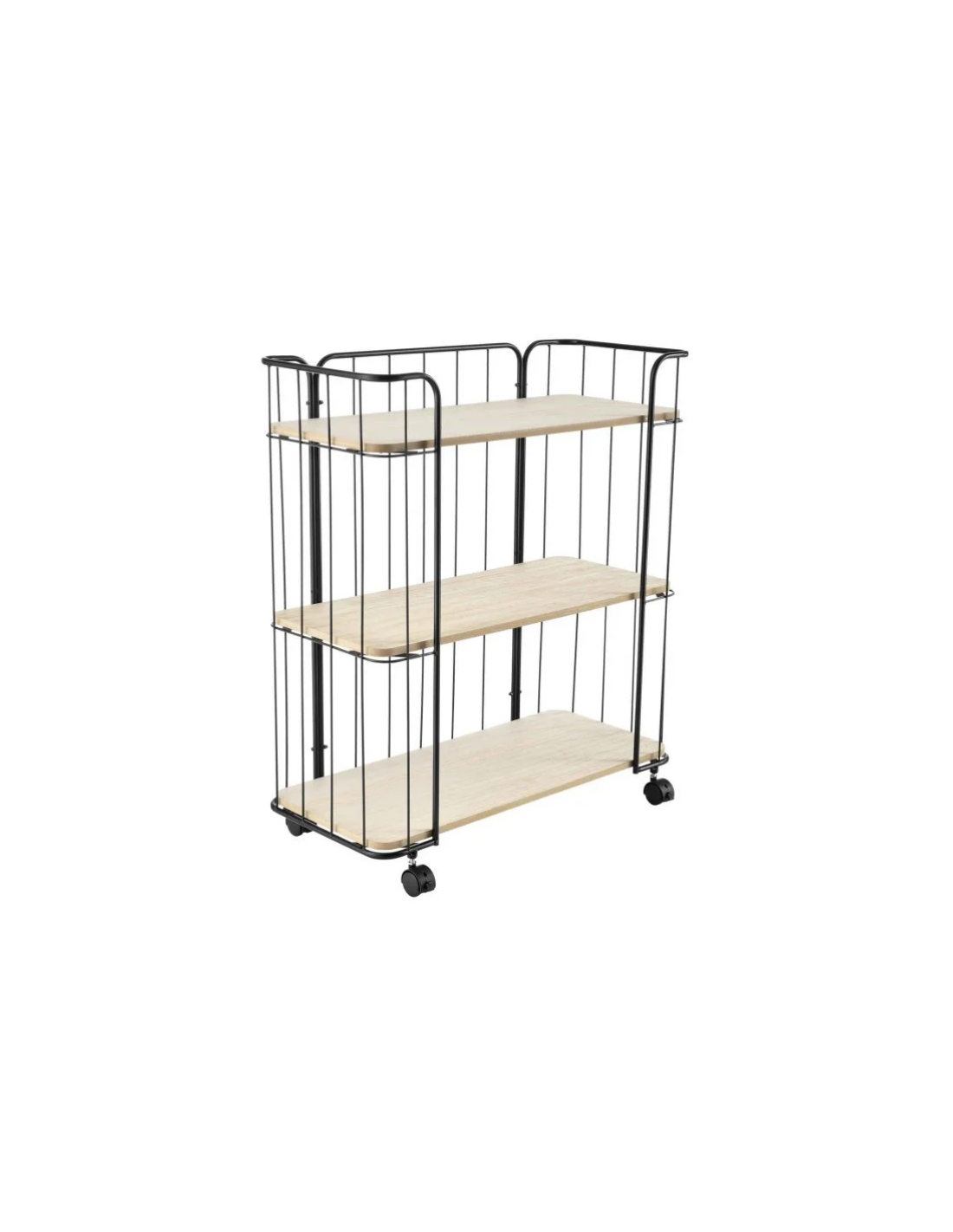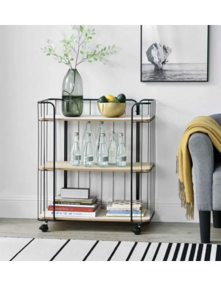 Reol på hjul i metal og mdf H79 x B70 cm - Sort/Natur