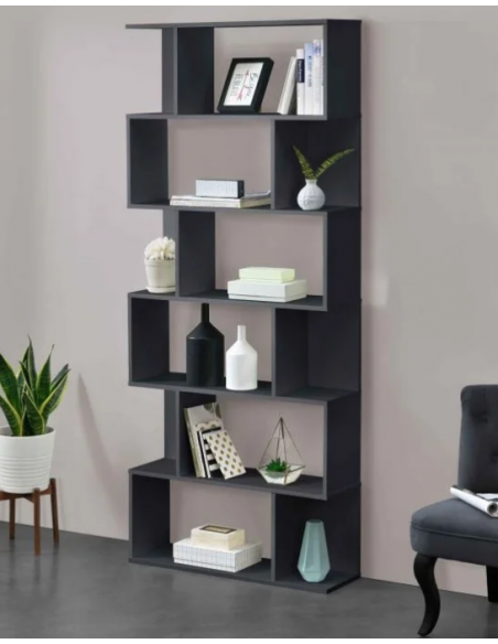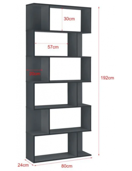 Reol udført i et design af mørkegrå møbelplade. Reolen måler 192 cm i højden og 80 x 24 cm i bredde og dybde.