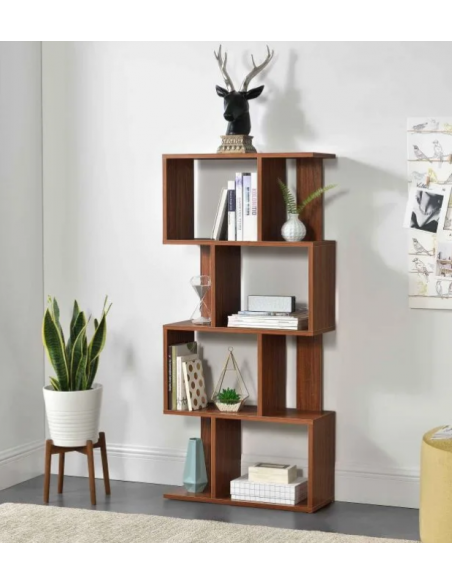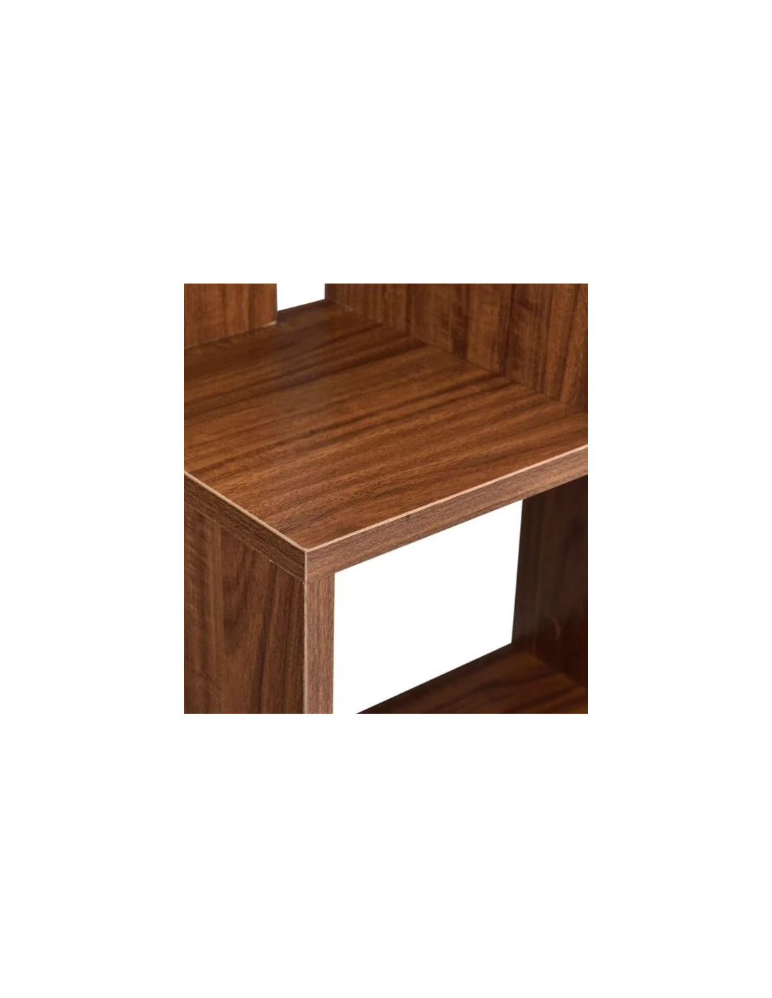 Reol udført i et design af valnøddefarvet møbelplade. Reolen måler 130 cm i højden og 60 x 24 cm i bredde og dybde.