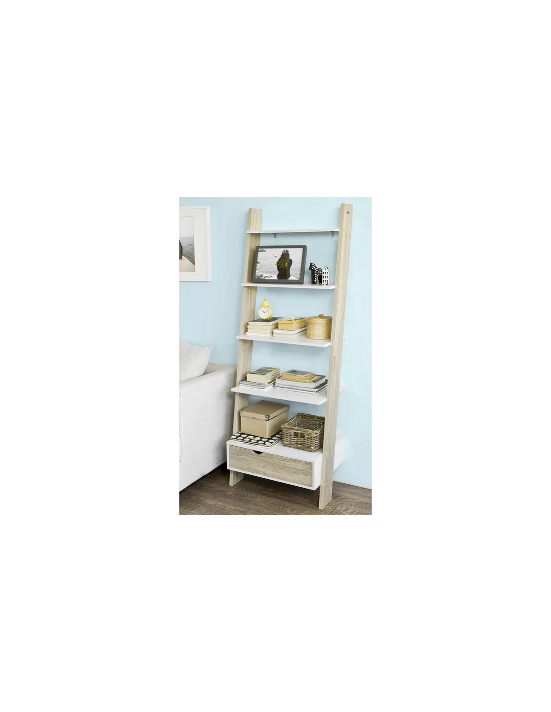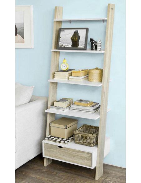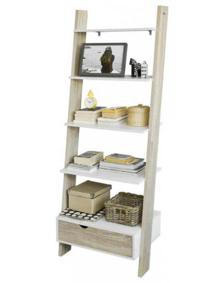 Reol i mdf og møbelplade H176 x B65 cm - Hvid/Sonoma eg