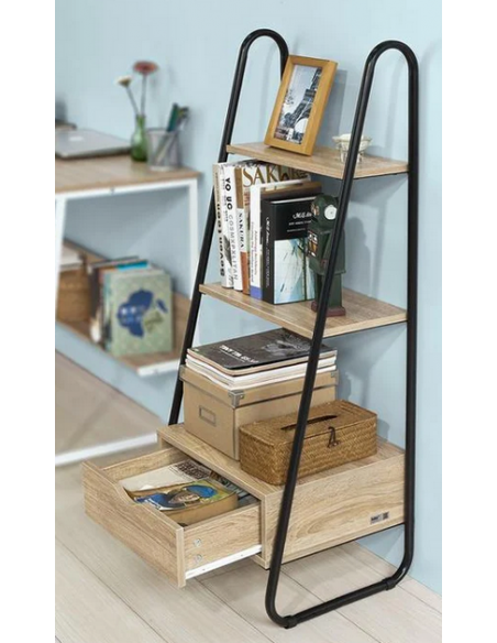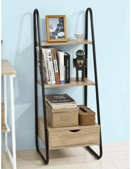 Reol i metal og møbelplade H115 x B44 cm - Sort/Sonoma eg