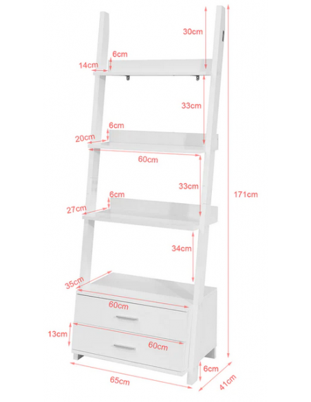 Reol udført i et design af mdf. Reolen måler 171 cm i højden og 65 x 41 cm i bredde og dybde.
