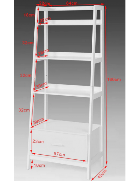 Reol udført i et design af mdf. Reolen måler 160 cm i højden og 64 x 40 cm i bredde og dybde.