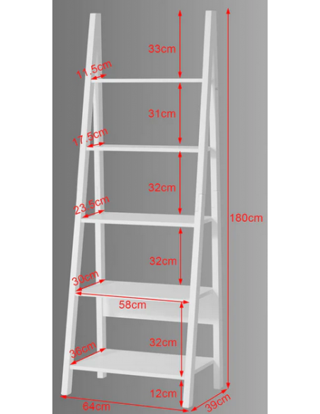 Reol udført i et design af møbelplade. Reolen måler 180 cm i højden og 64 x 39 cm i bredde og dybde.