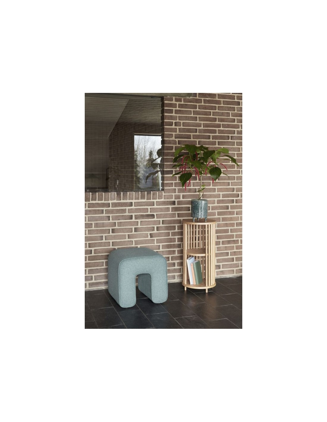 Hübsch Folk reol udført i et design af egetræ og egetræsfinér. Reolen måler 70 cm i højden og 35 cm i diameter.