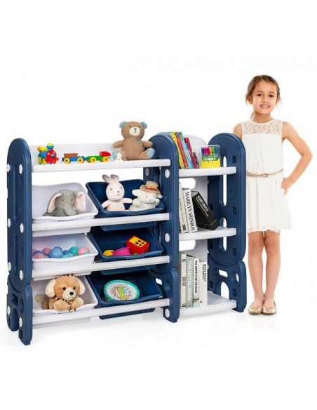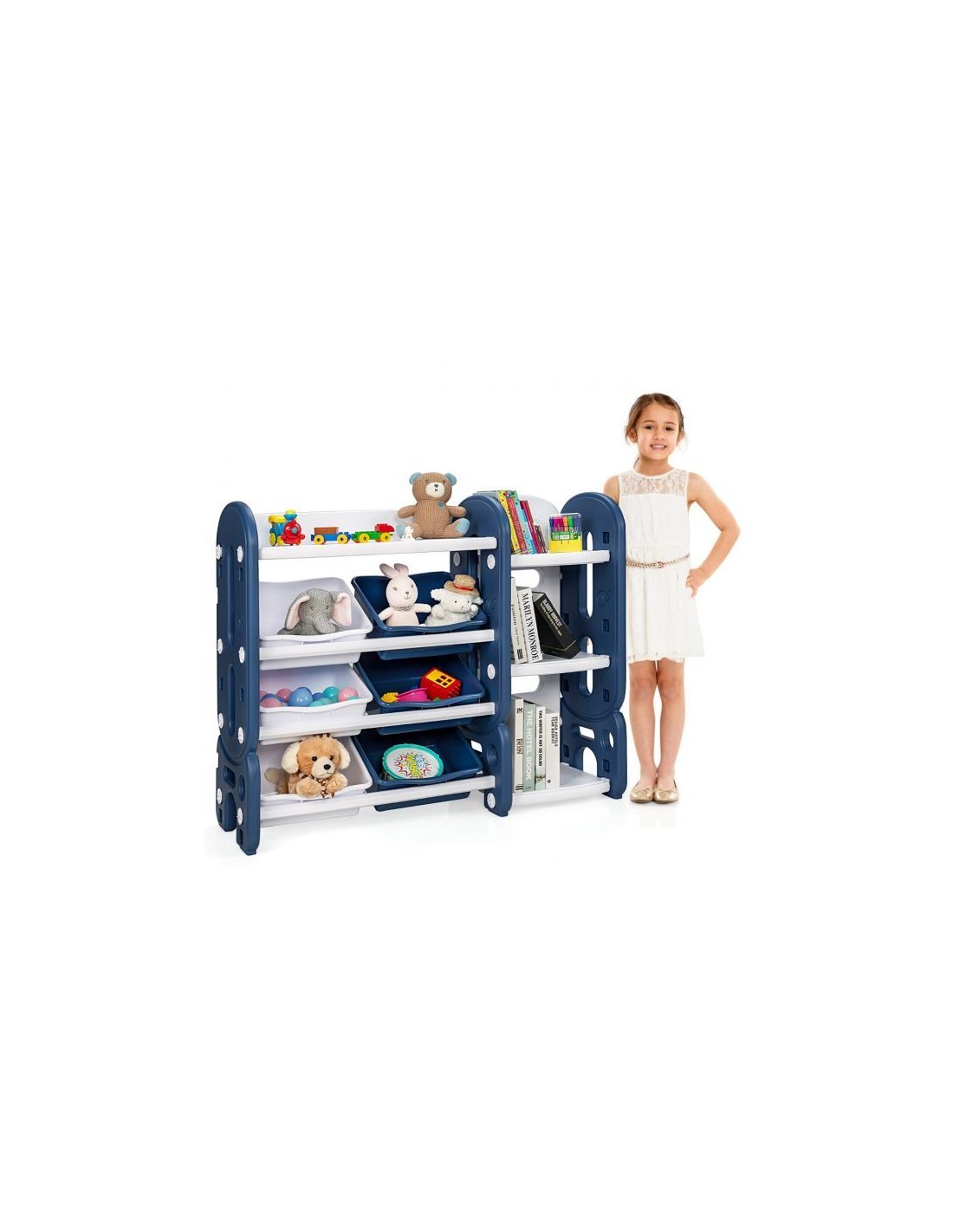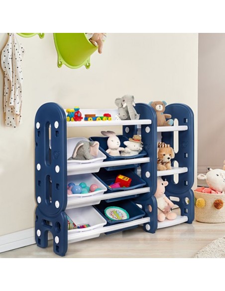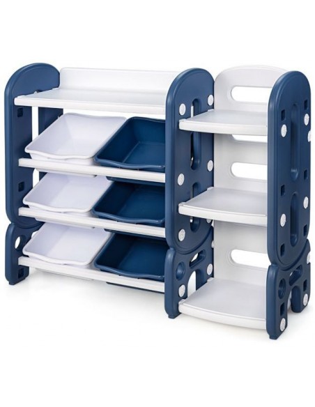 Reol med kasser i kunststof H92 x B112 cm - Hvid/Blå