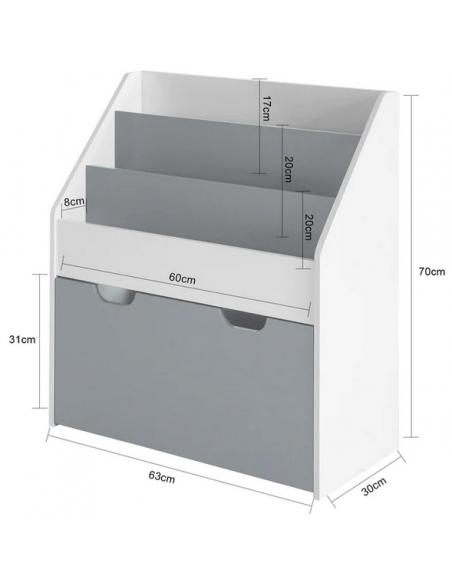 Reol i møbelplade H70 x B63 cm - Hvid/Grå