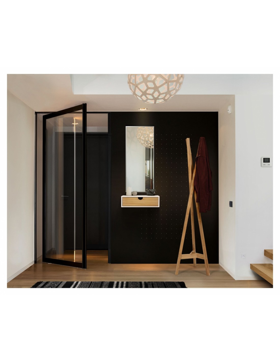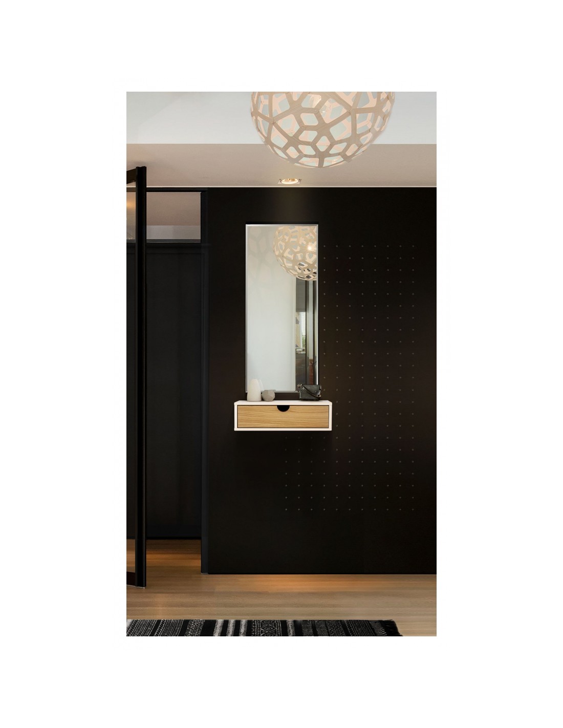 Væghængt sengebord fra Woodman, udført i et moderne design af MDF og egetræsfinér. Sengebordet måler 40 x 30 cm i bredde og dybde og 15 cm i højden.