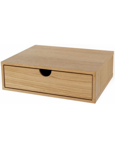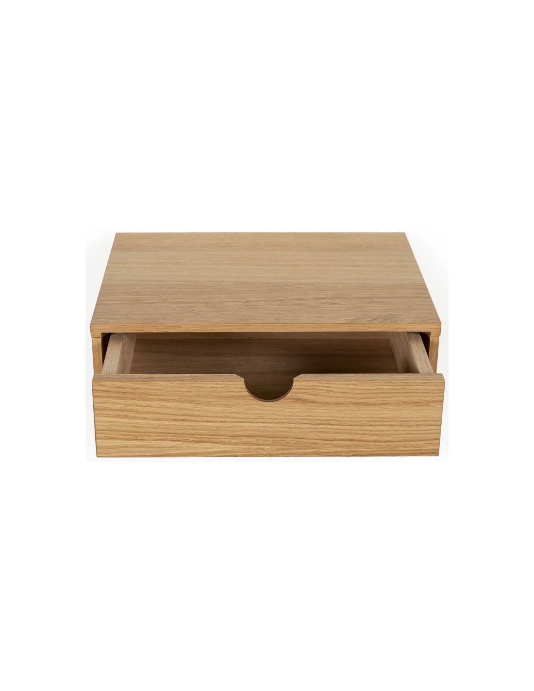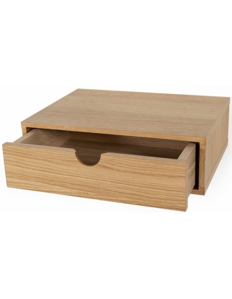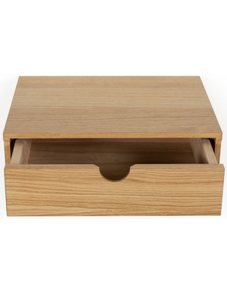 Væghængt sengebord fra Woodman, udført i et moderne design af MDF og egetræsfinér. Sengebordet måler 40 x 30 cm i bredde og dybde og 15 cm i højden.