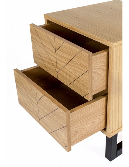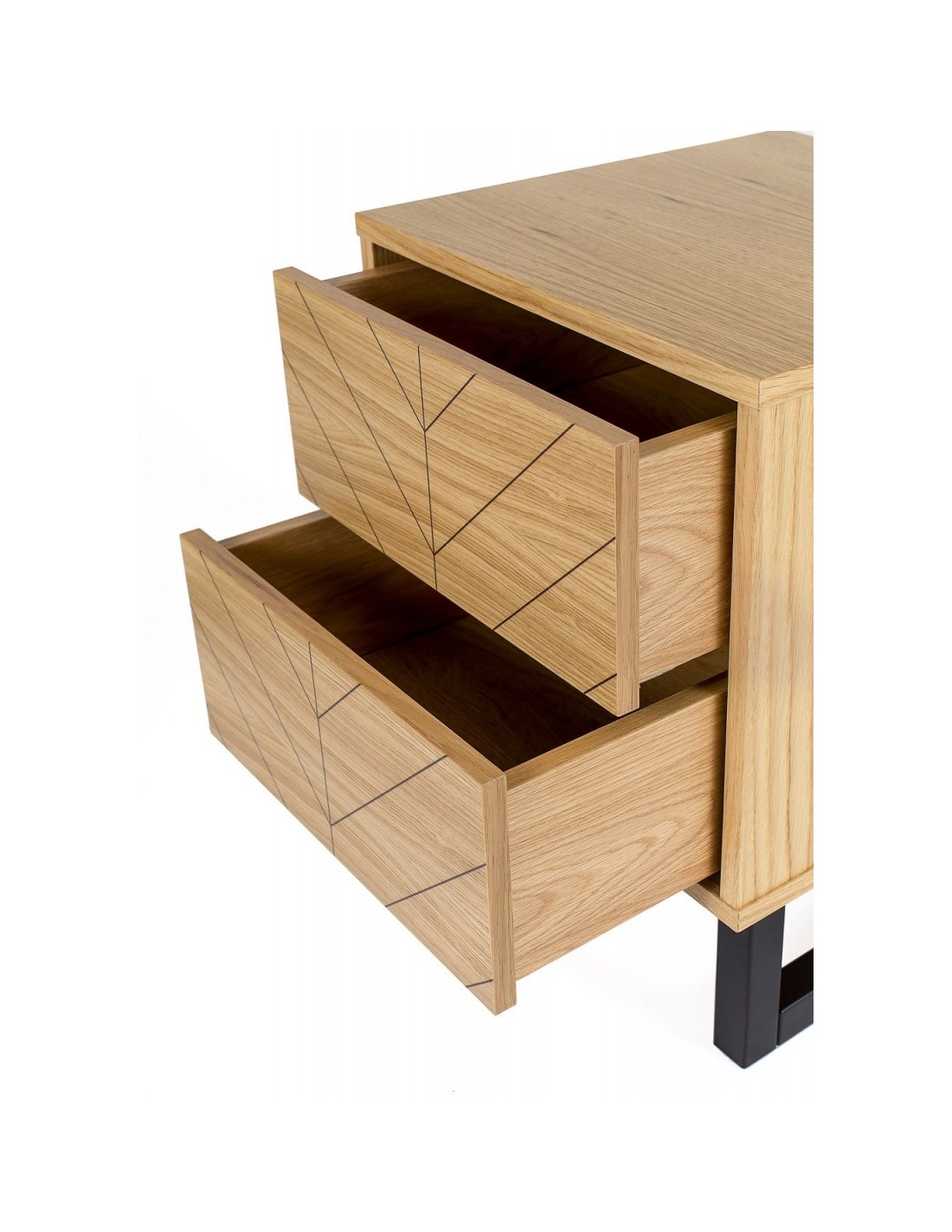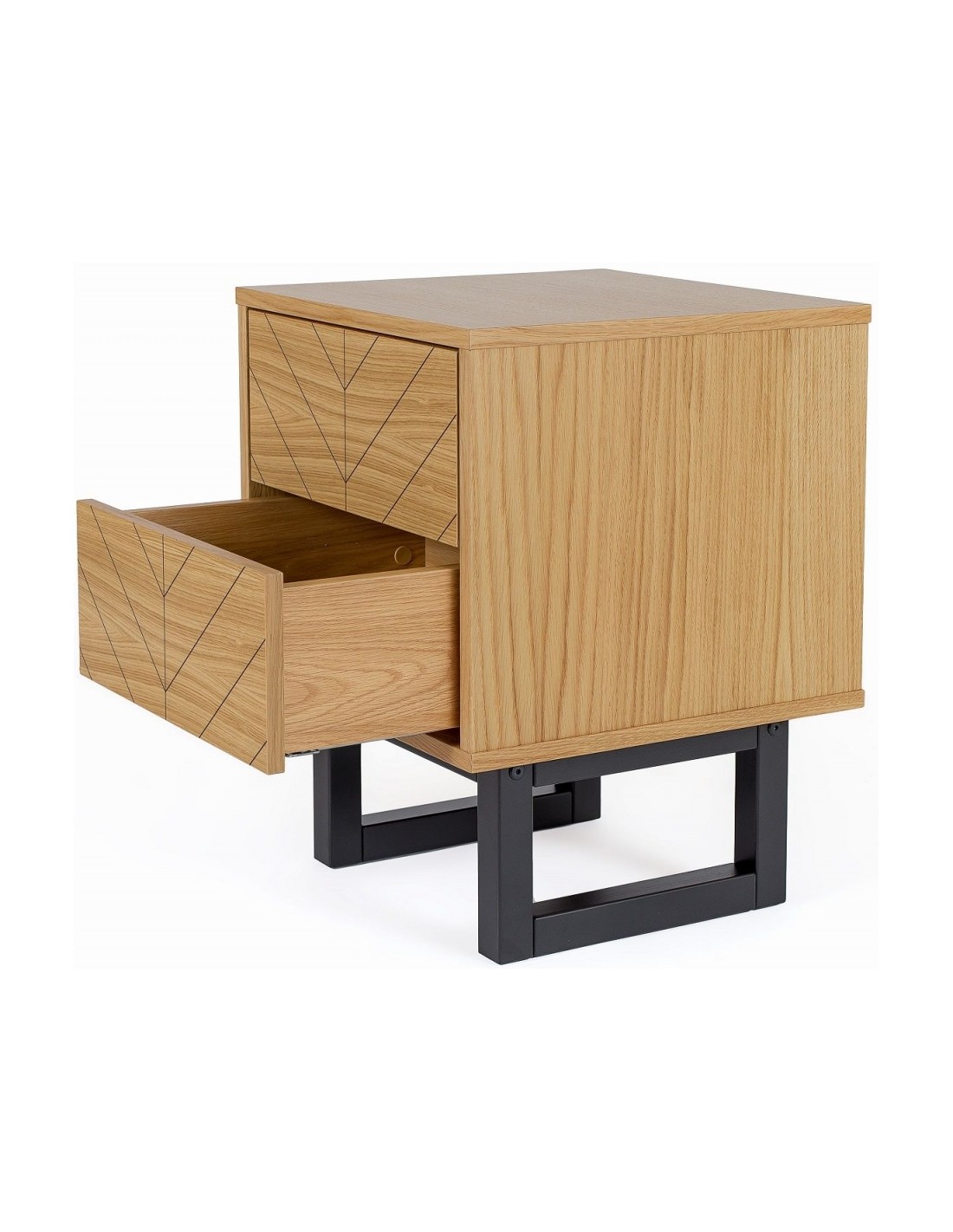 Sengebord fra Woodman, udført i et moderne design af birketræ og egetræsfinér. Sengebordet måler 40 x 40 cm i bredde og dybde og 53 cm i højden. Sengebordet har 2 skuffer med push-open funktion.