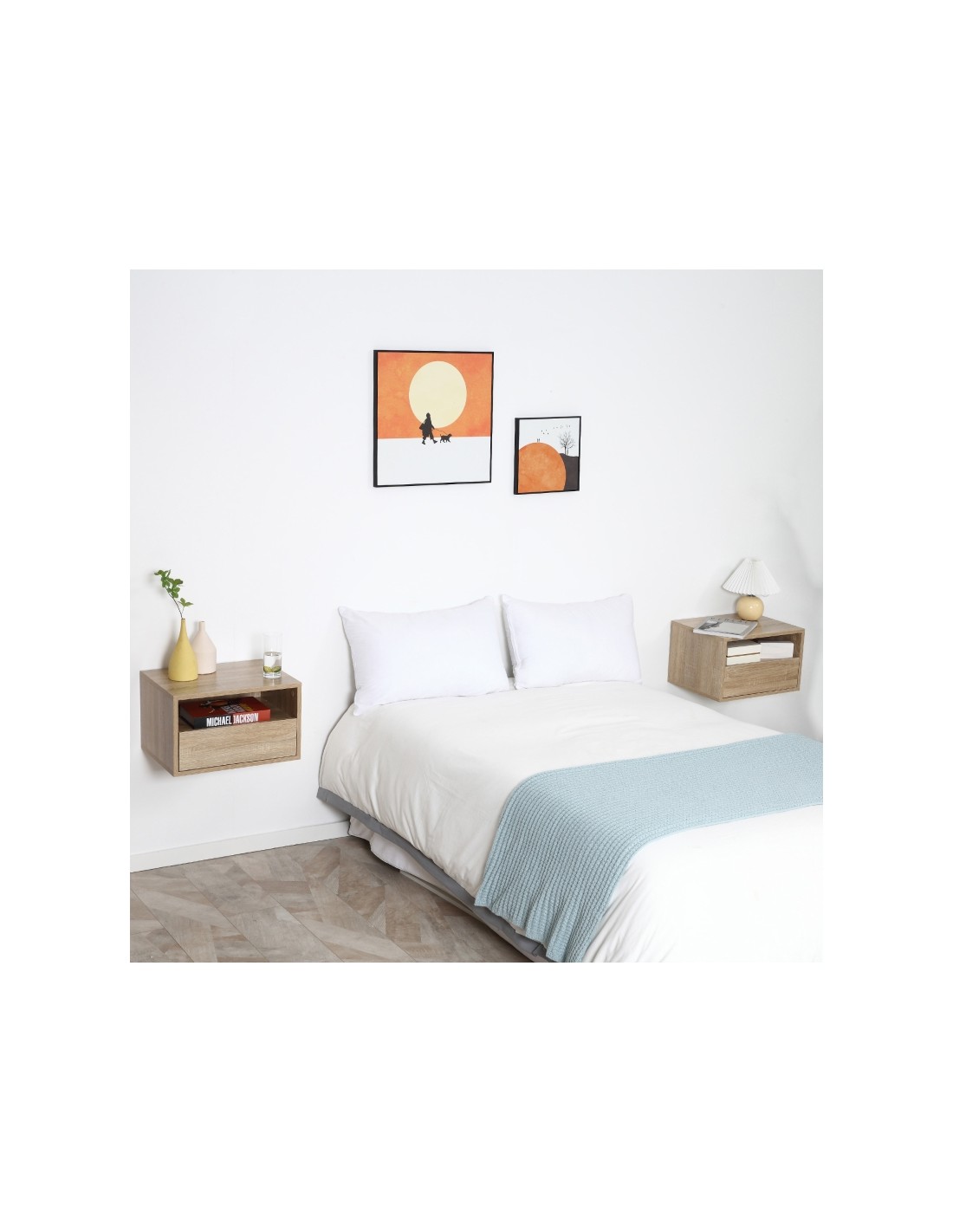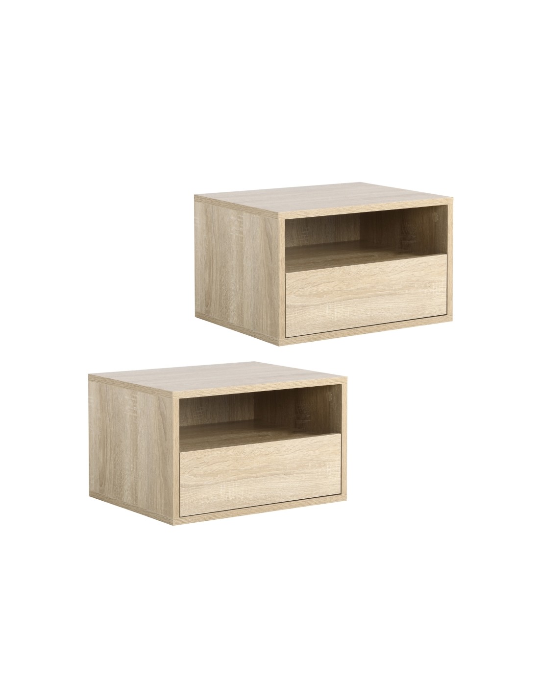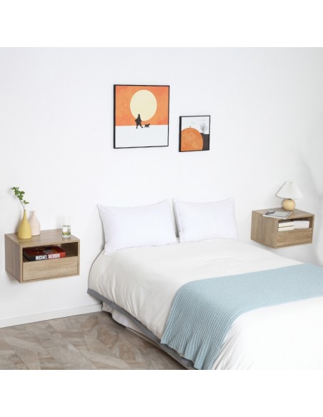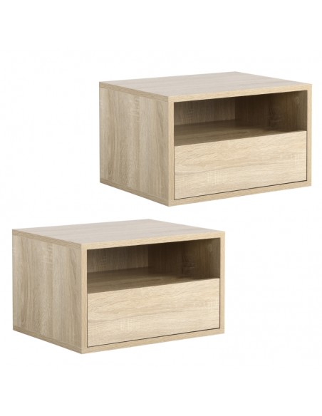 2 x Væghængte sengeborde i møbelplade H27,5 x B45 cm - Natur