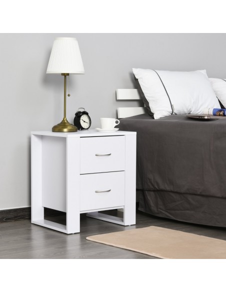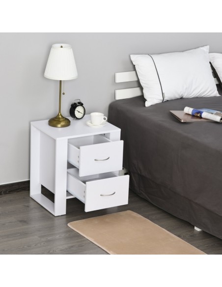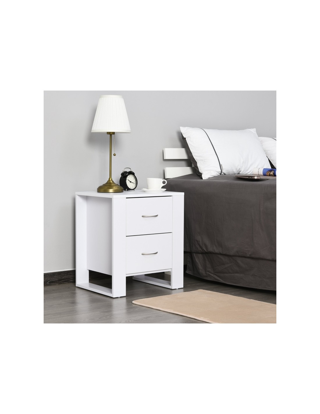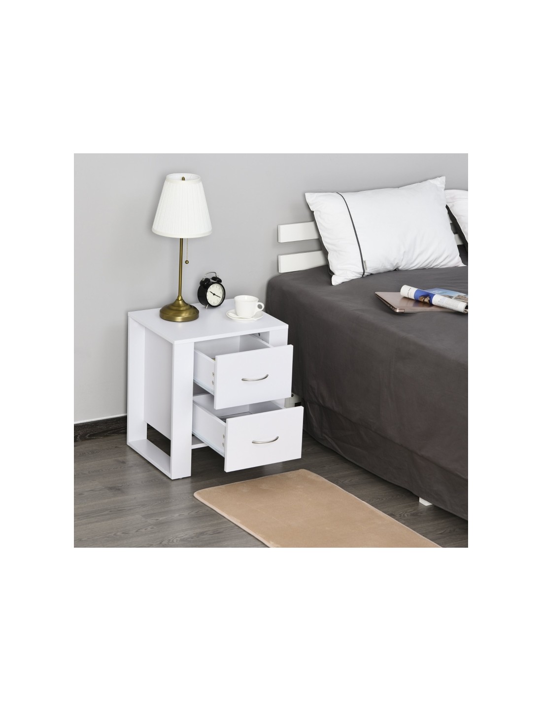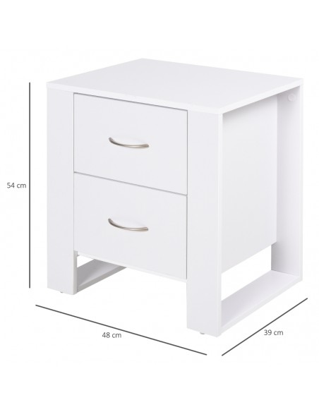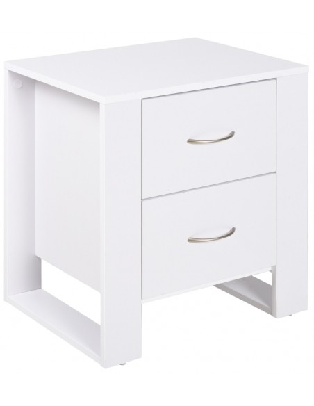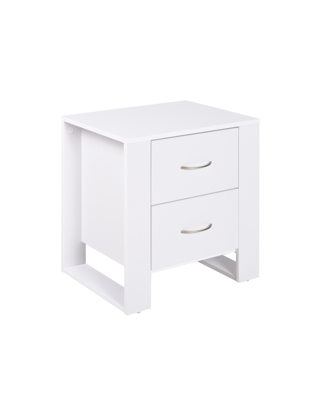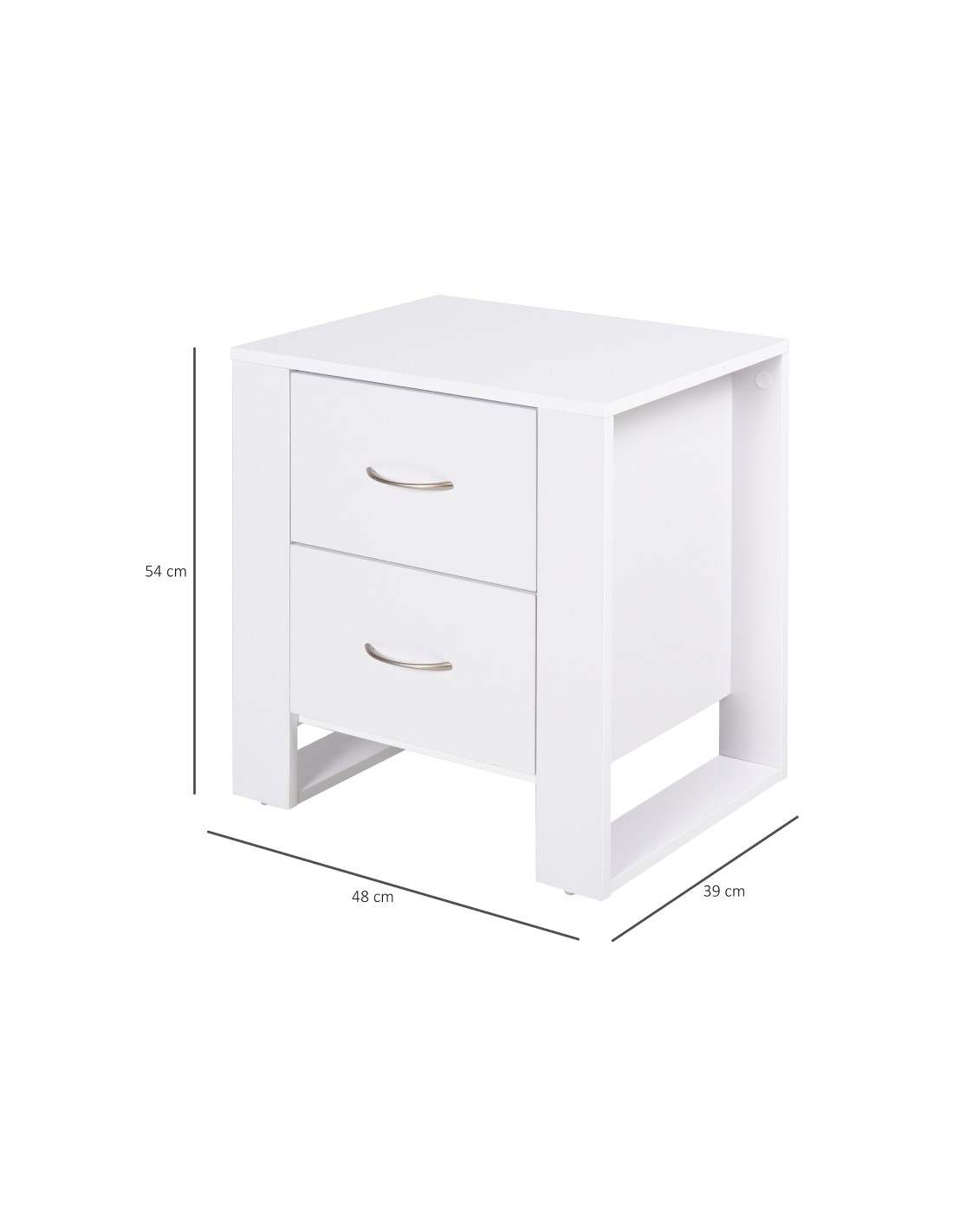Sengebord udført i et design af møbelplade. Sengebordet indeholder 2 skuffer og måler 48 x 39 cm i bredde og dybde og 54 cm i højden.
