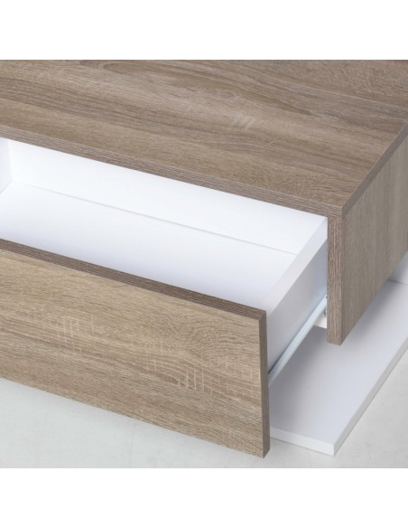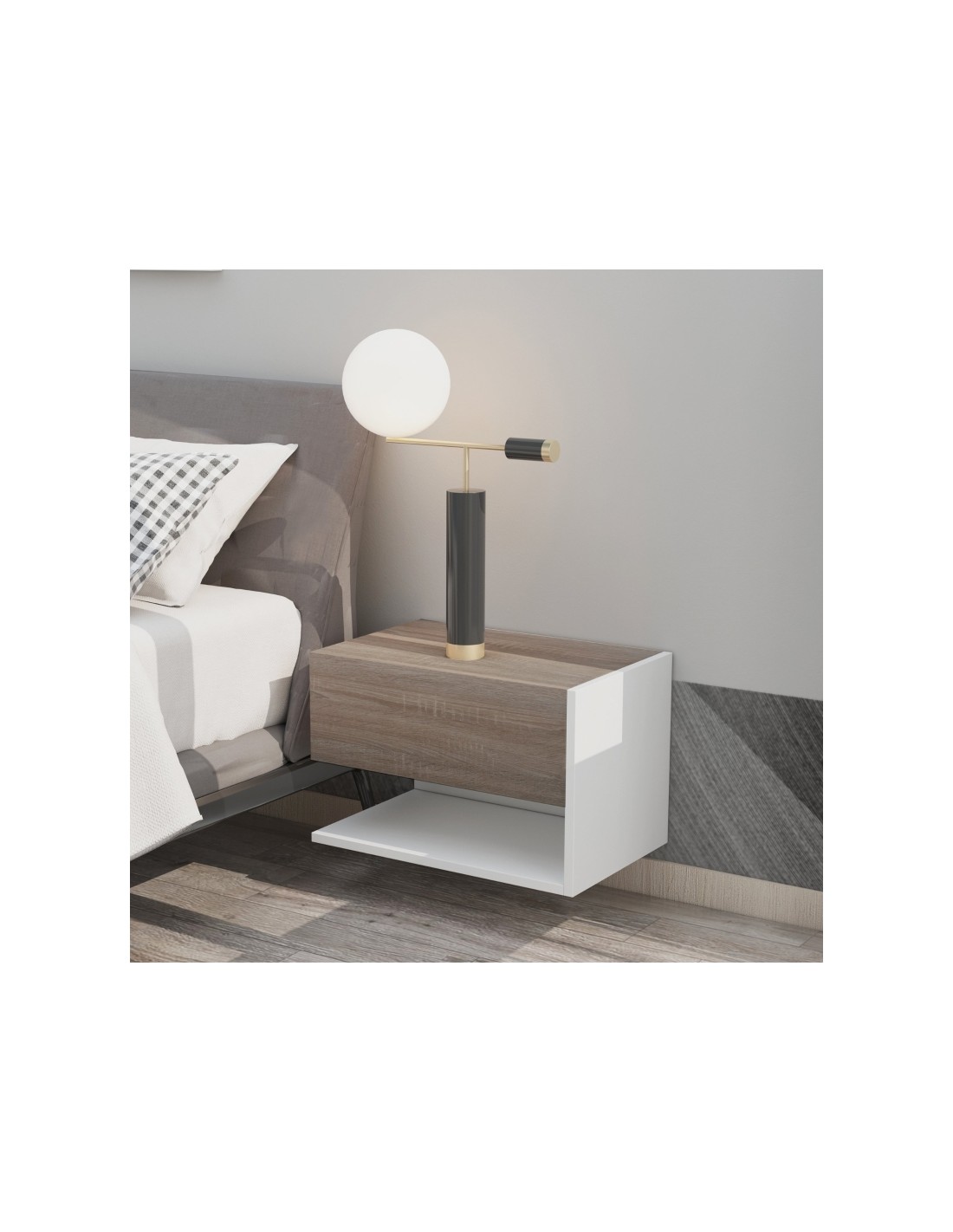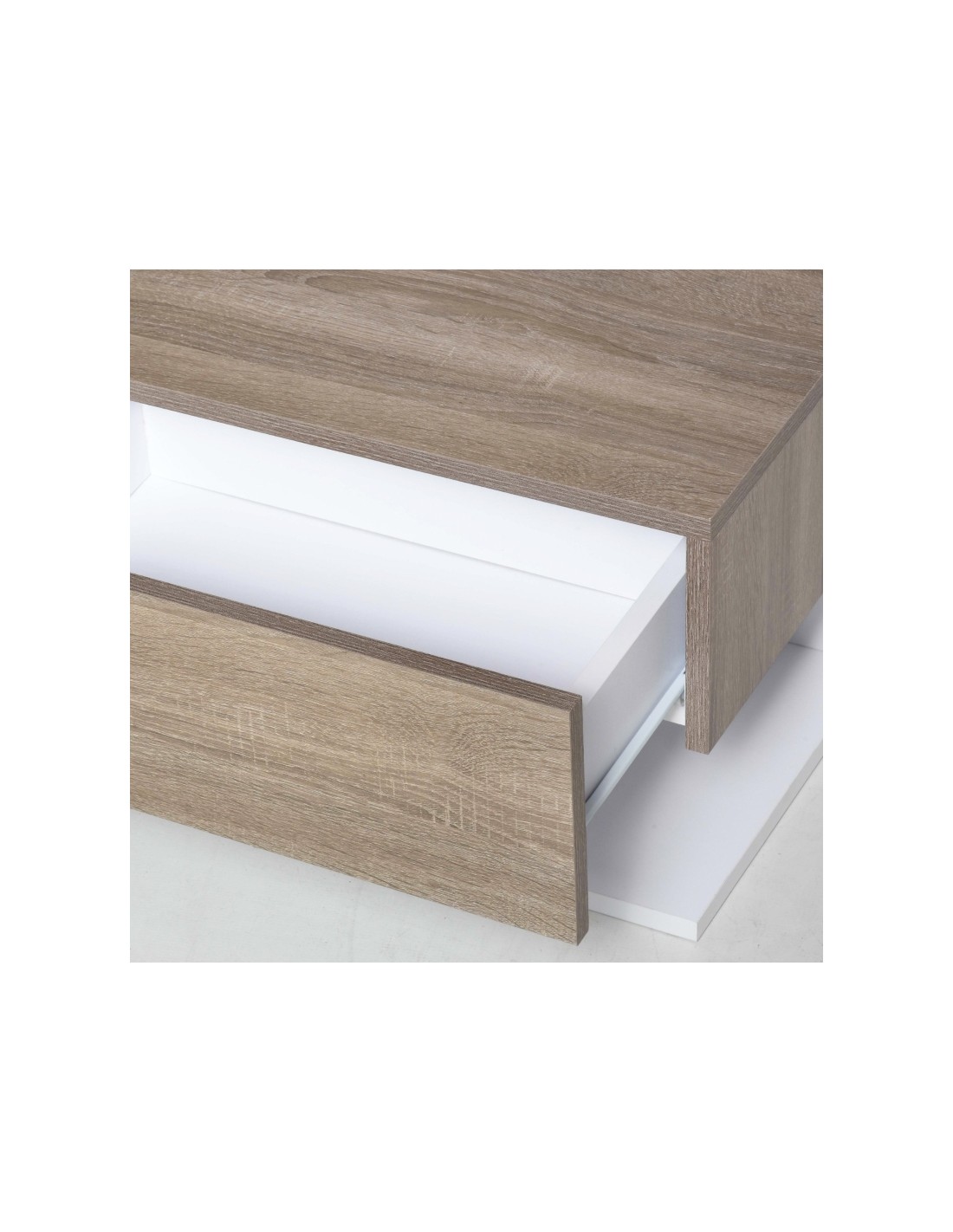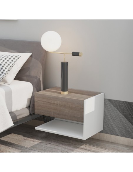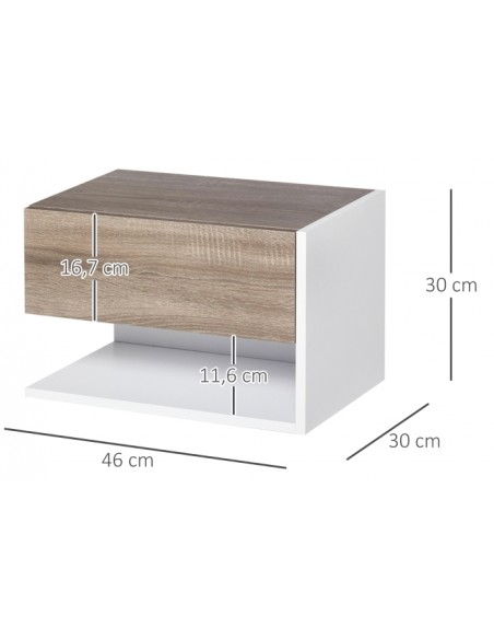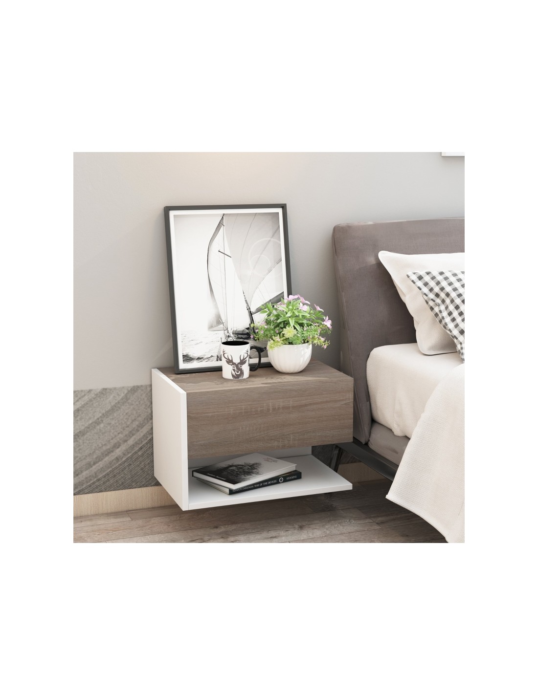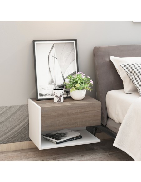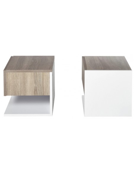 2 x Væghængte sengeborde i møbelplade H30 x B46 cm - Hvid/Mørk natur