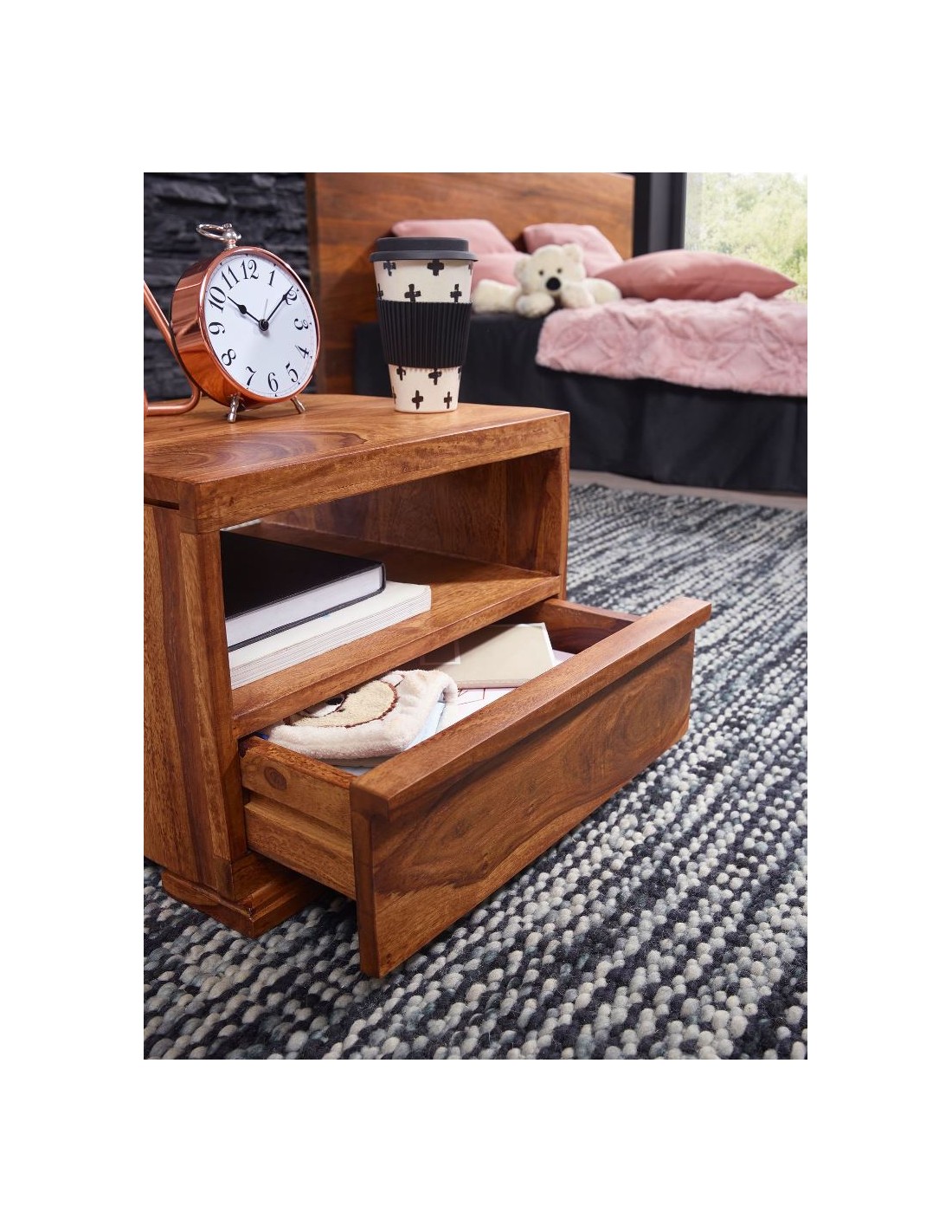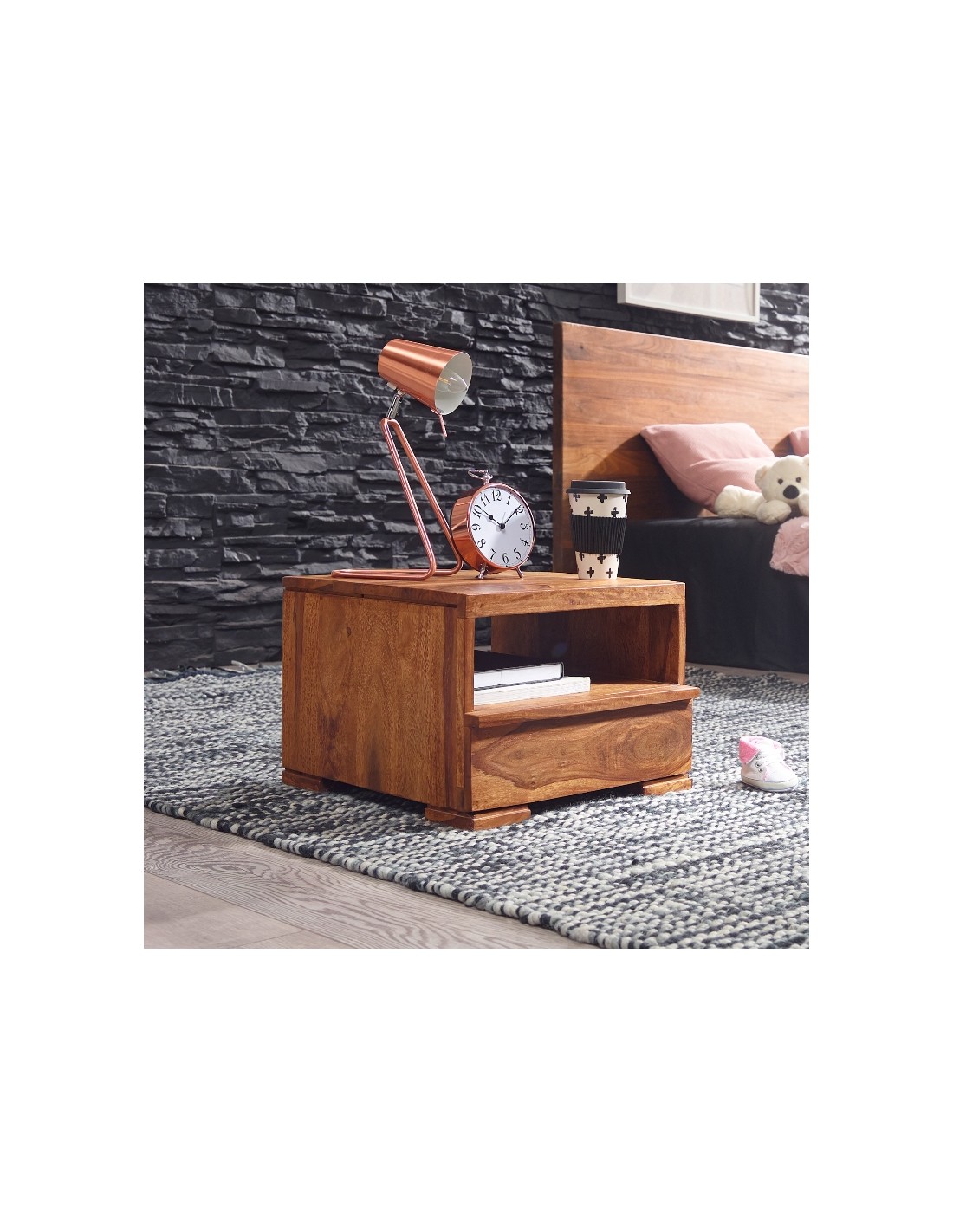 Sengebord i sheeshamtræ H30 x B40 cm - Brun