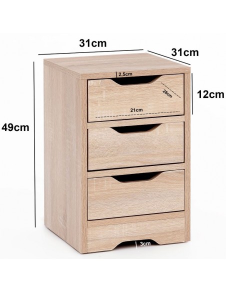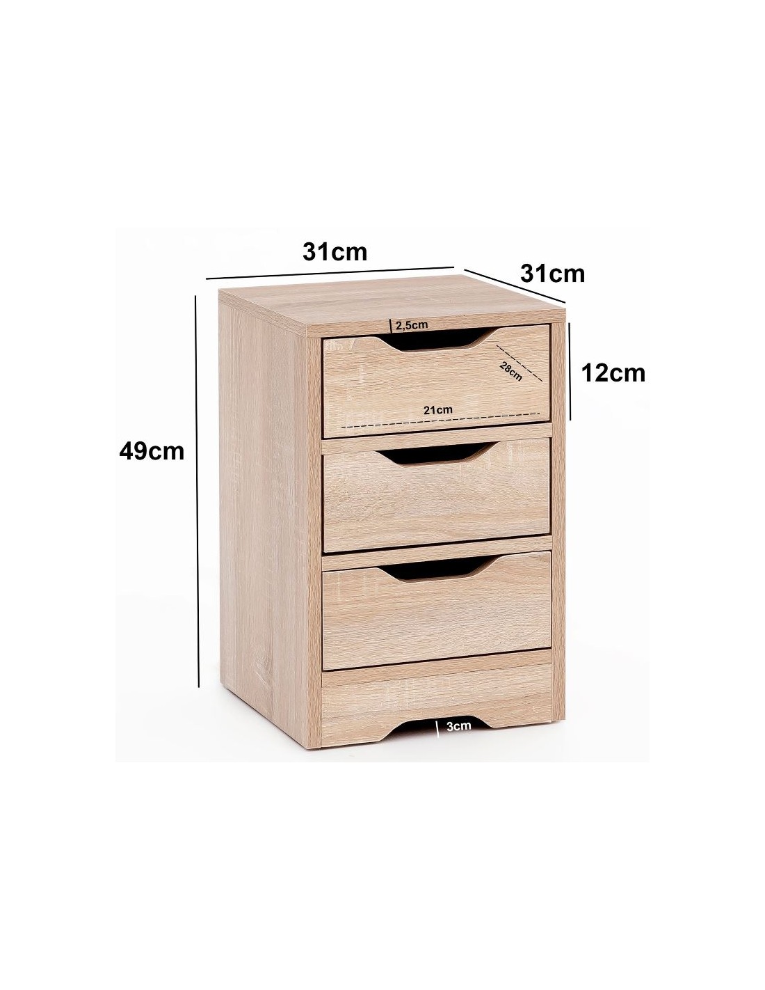 Sengebord fremstillet i et design af sonoma egetræsfarvet møbelplade. Sengebordet måler 49 cm i højden og 31 x 31 cm i bredde og dybde.