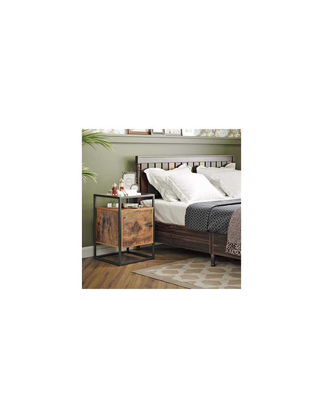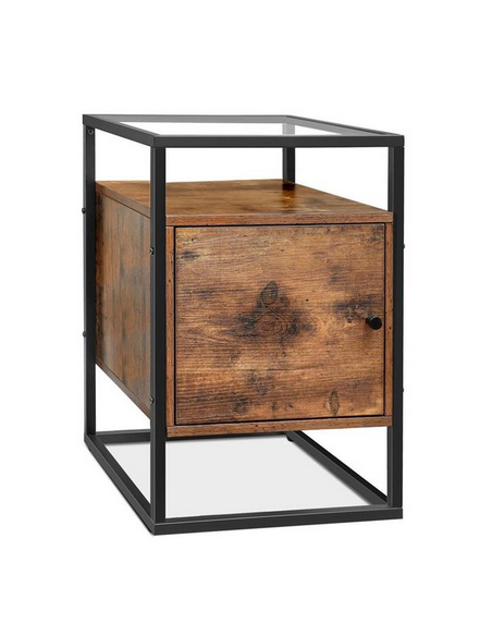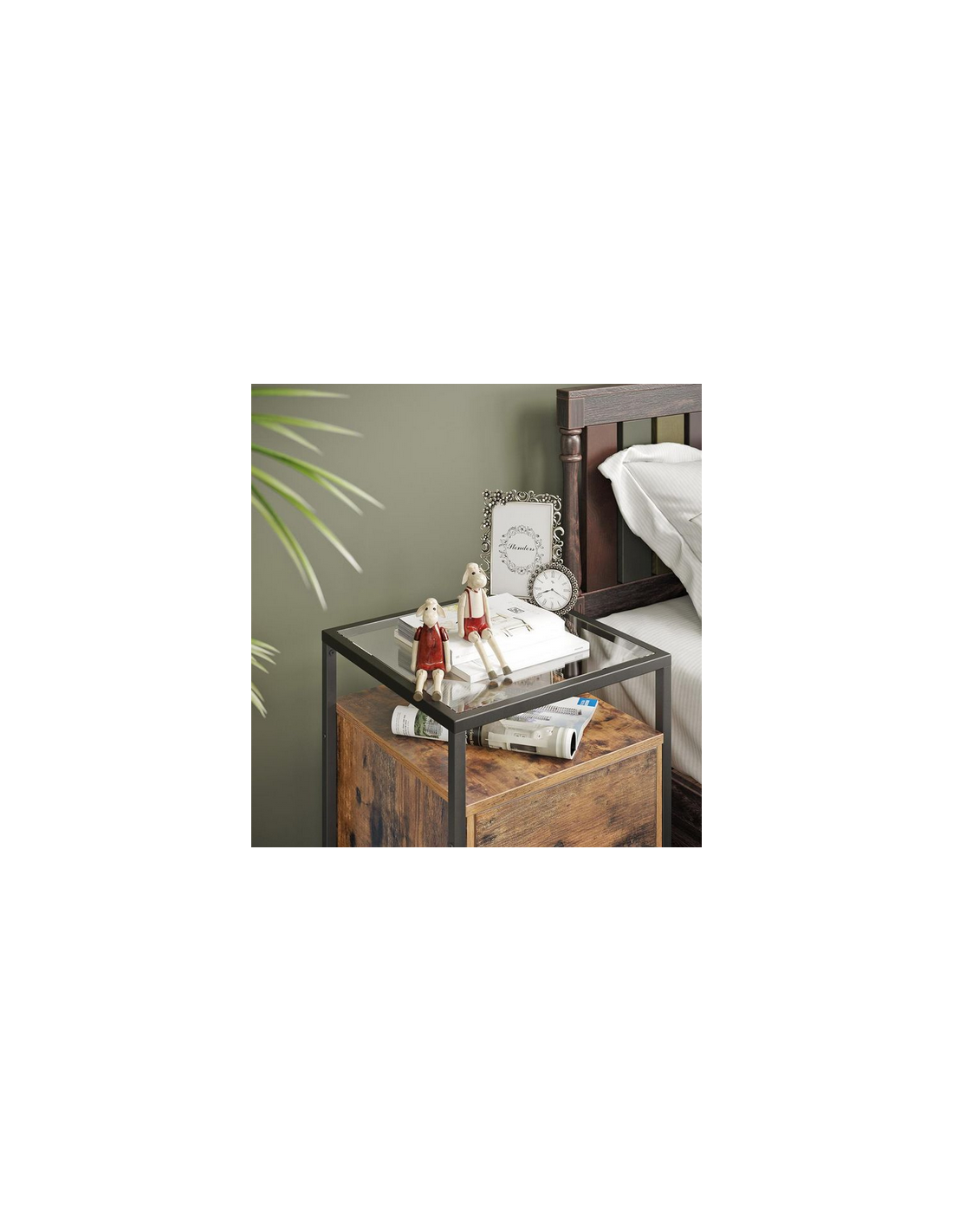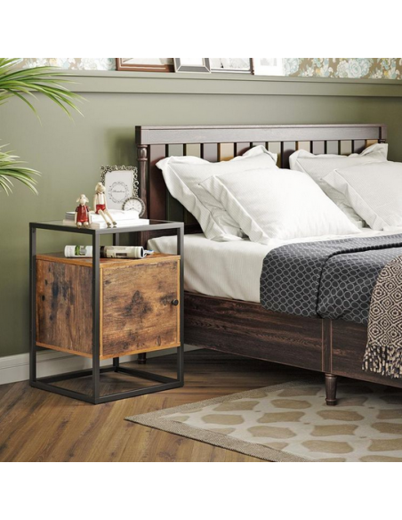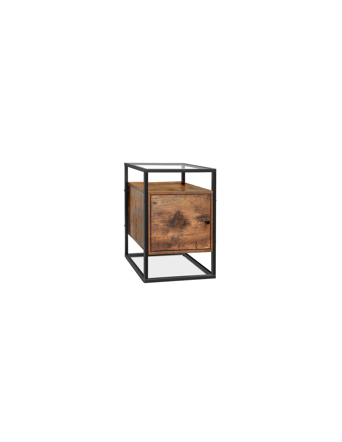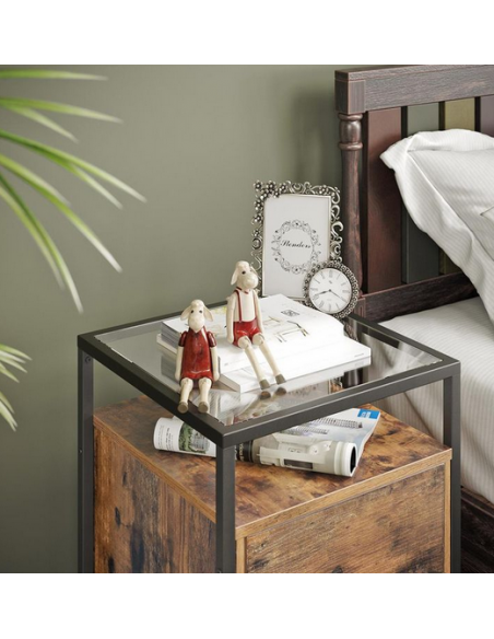 Sengebord i metal, glas og møbelplade H60 x B40 cm - Sort/Brun