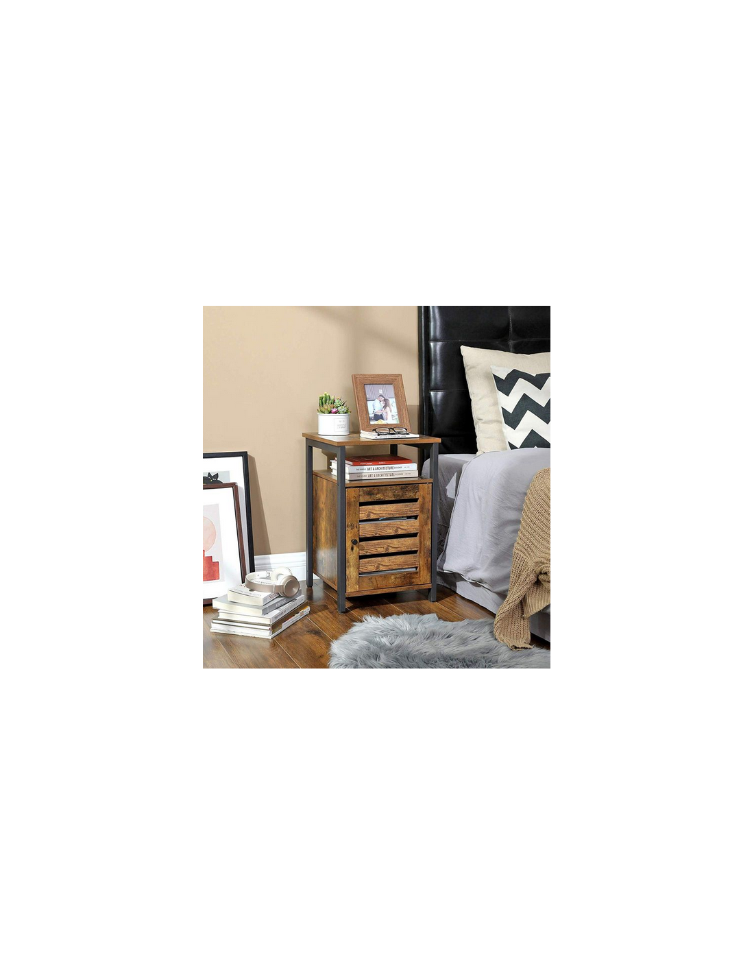 Sengebord i metal og møbelplade H60 x B40 cm - Sort/Brun