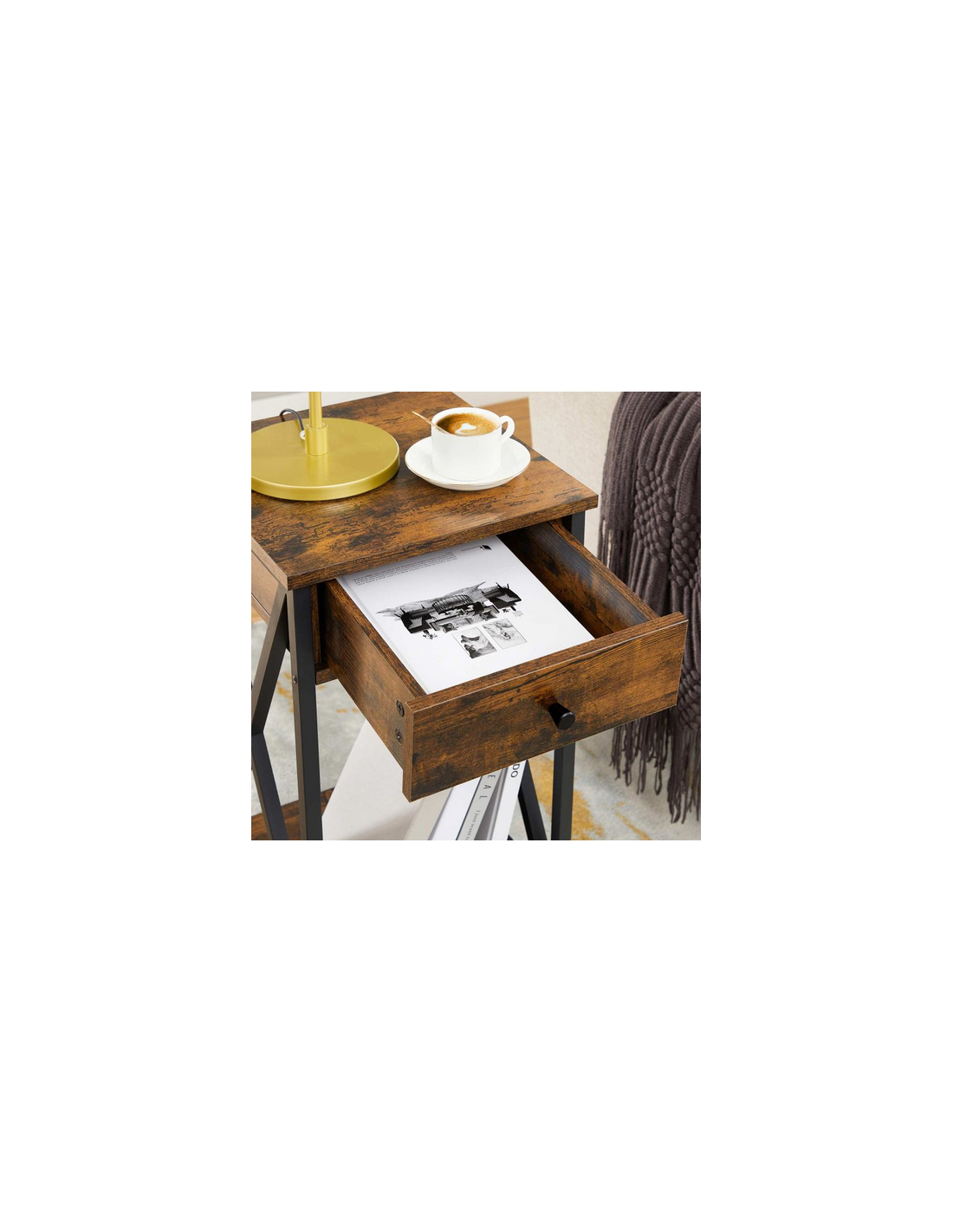 Sengebord i metal og møbelplade H70 x B35 cm - Sort/Brun