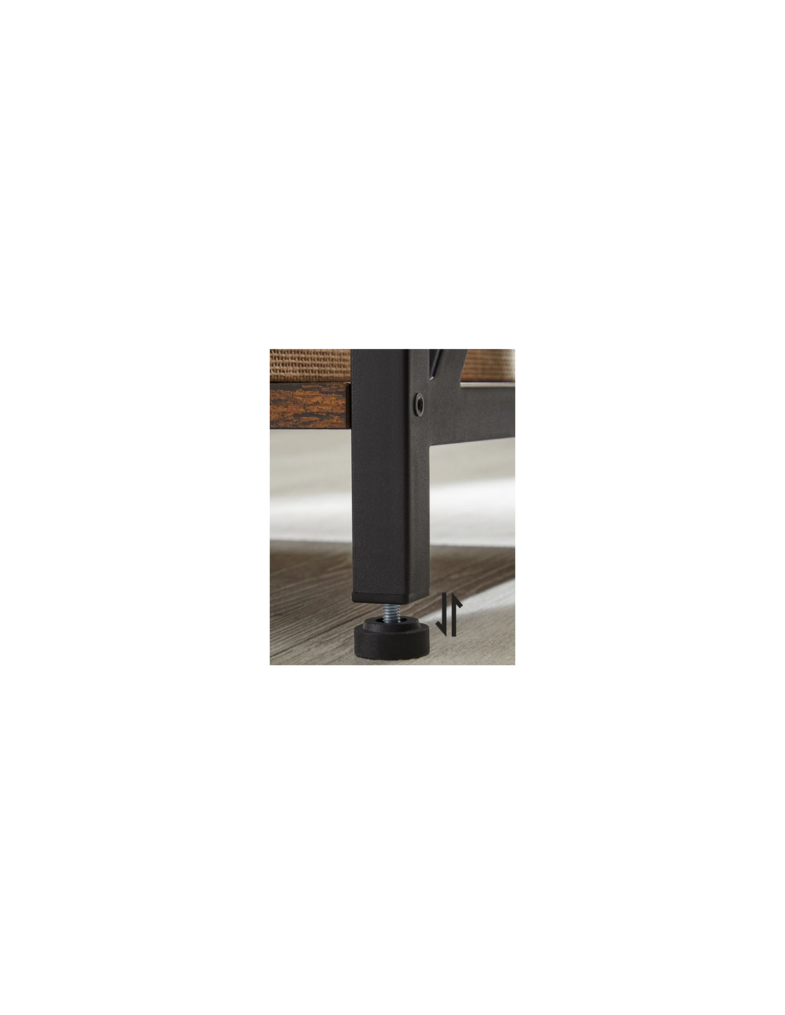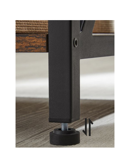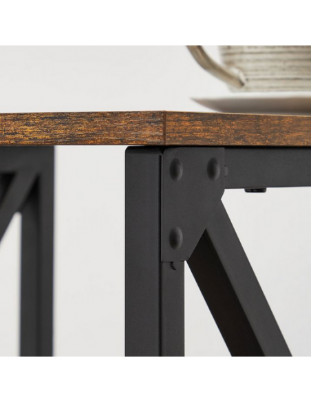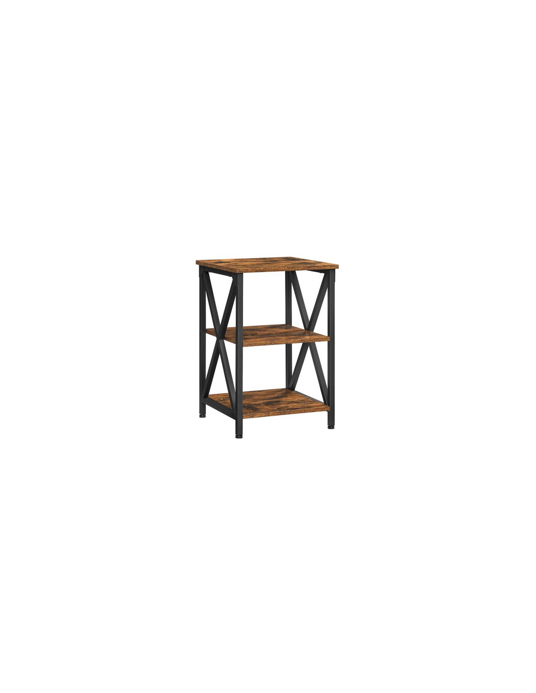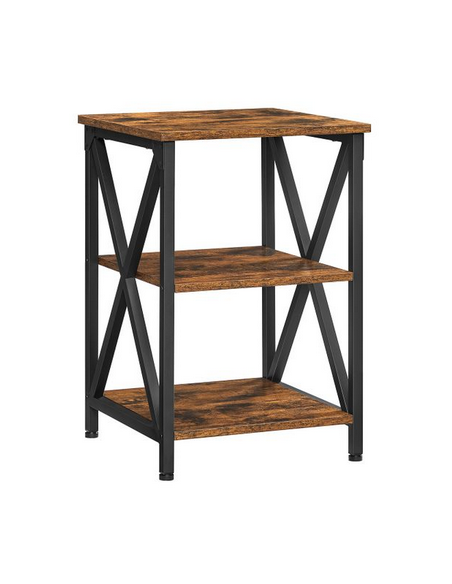 Sengebord udført i et design af sortlakeret metal og brun møbelplade. Sengebordet måler 60 cm i højden og 40 x 40 cm i bredde og dybde.
