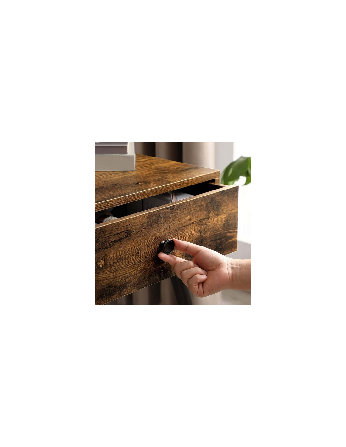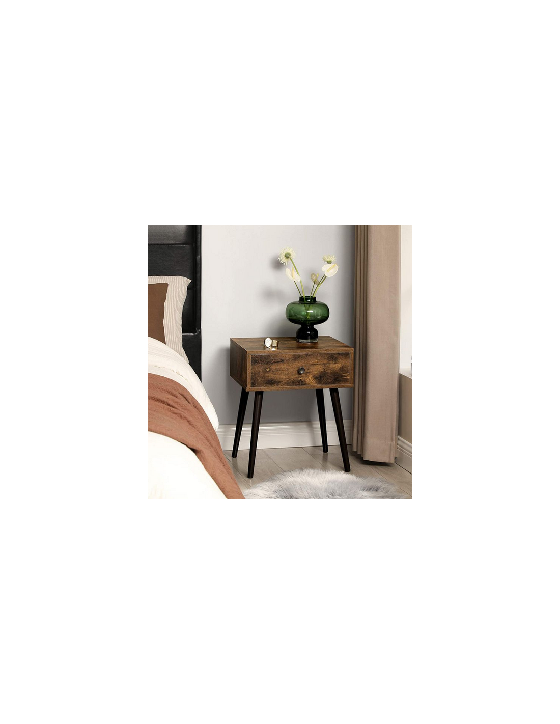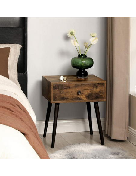 Sengebord i træ og møbelplade H55,5 x B48 cm - Sort/Brun