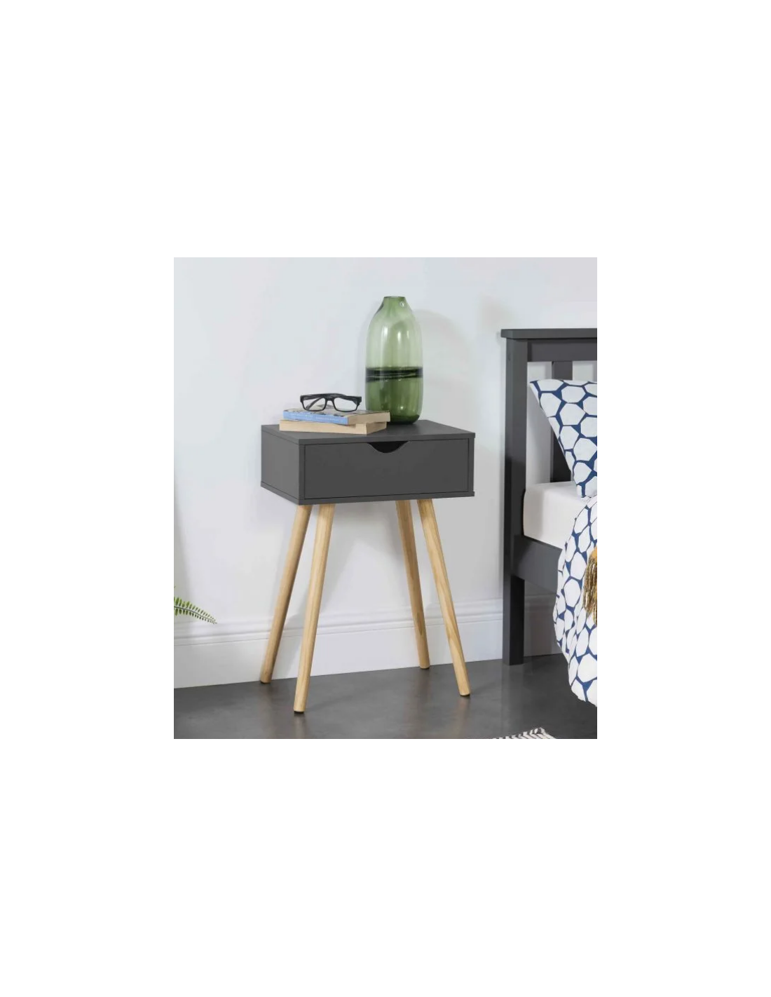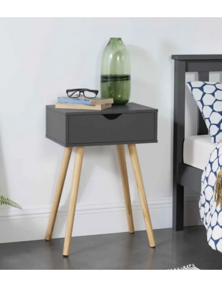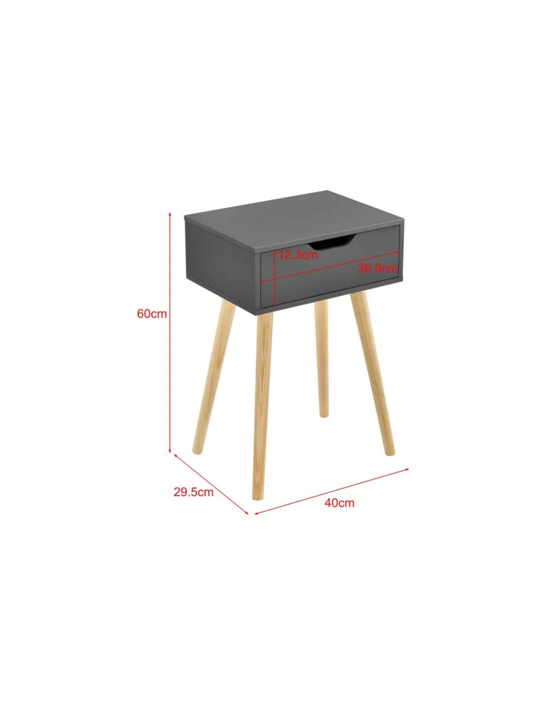 Sengebord i træ og møbelplade H60 x B40 cm - Natur/Grå