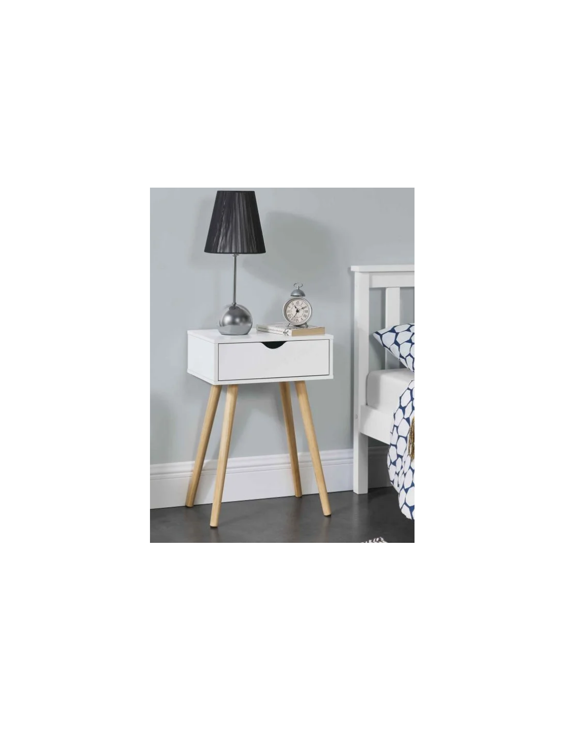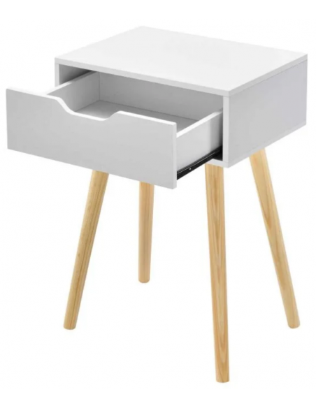 Sengebord i træ og møbelplade H60 x B40 cm - Natur/Hvid