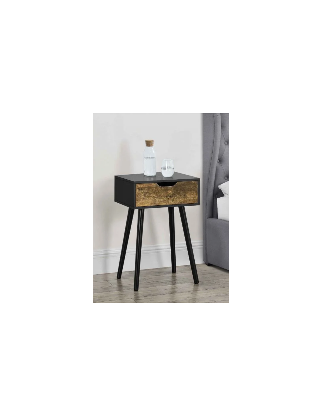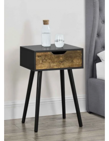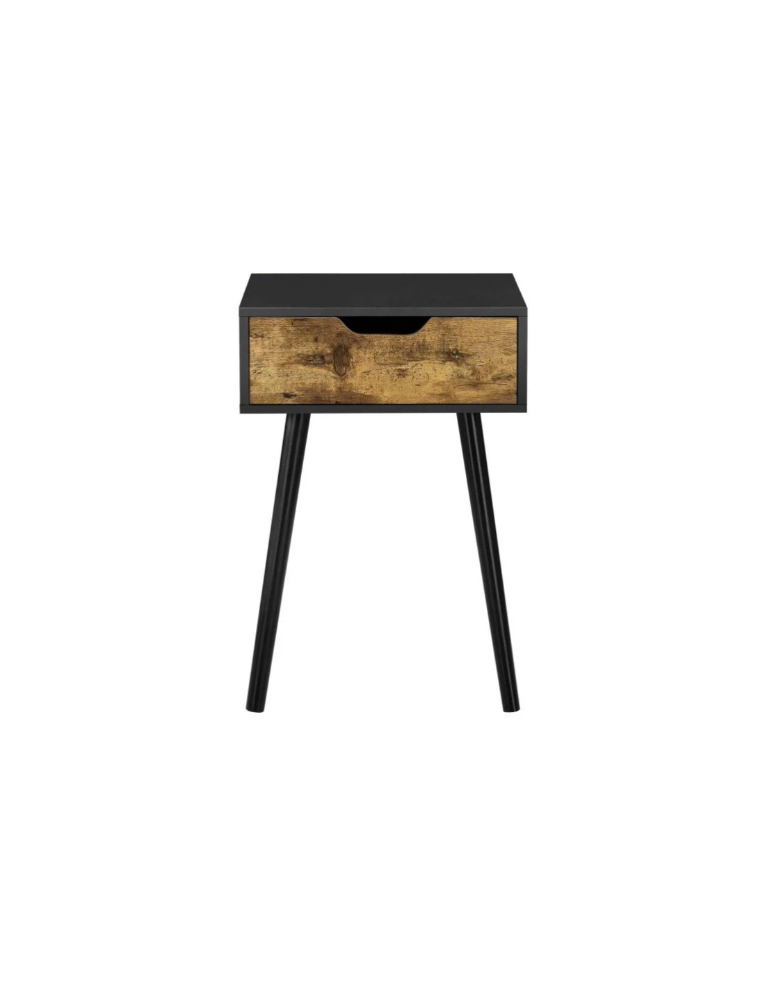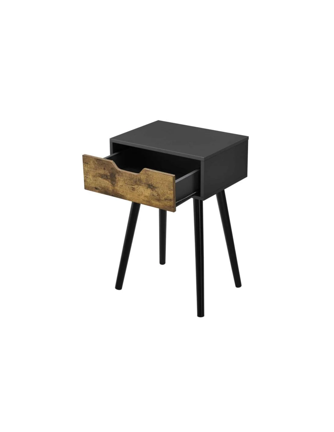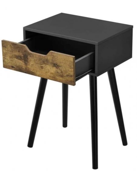 Sengebord i træ og møbelplade H60 x B40 cm - Sort/Vintage brun