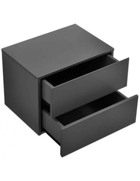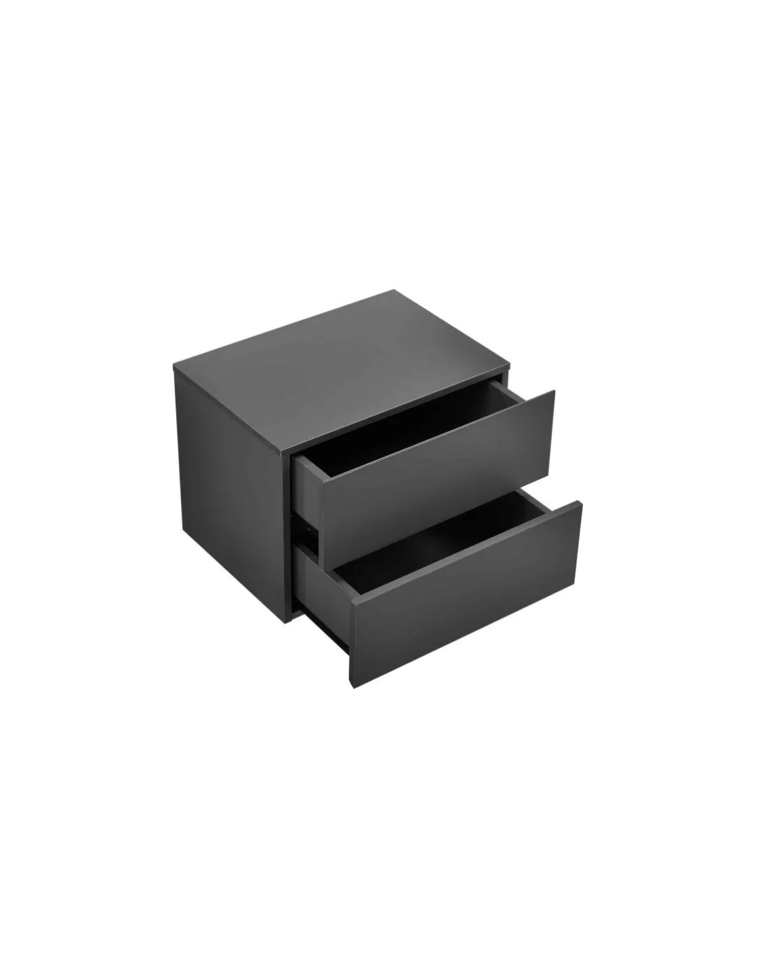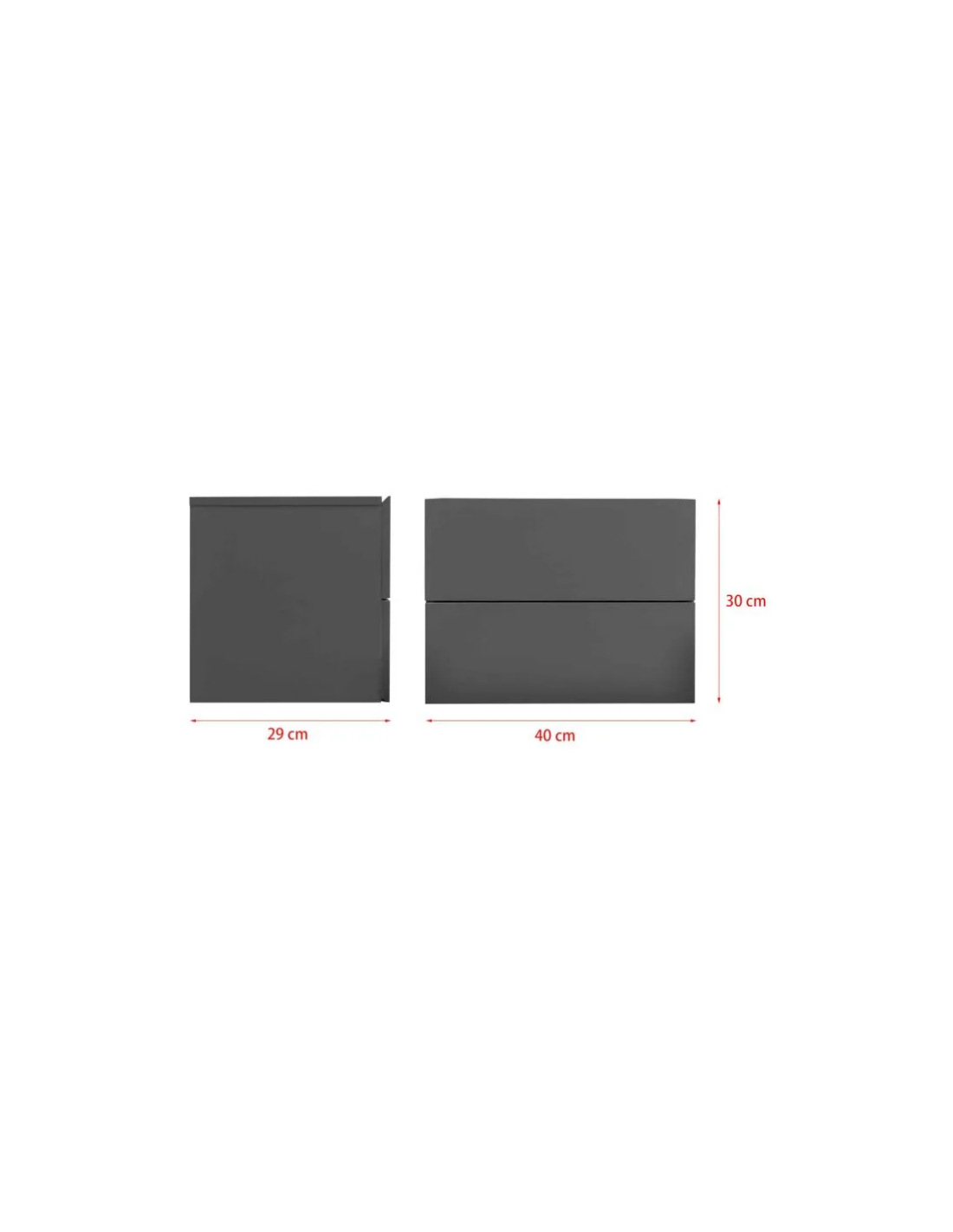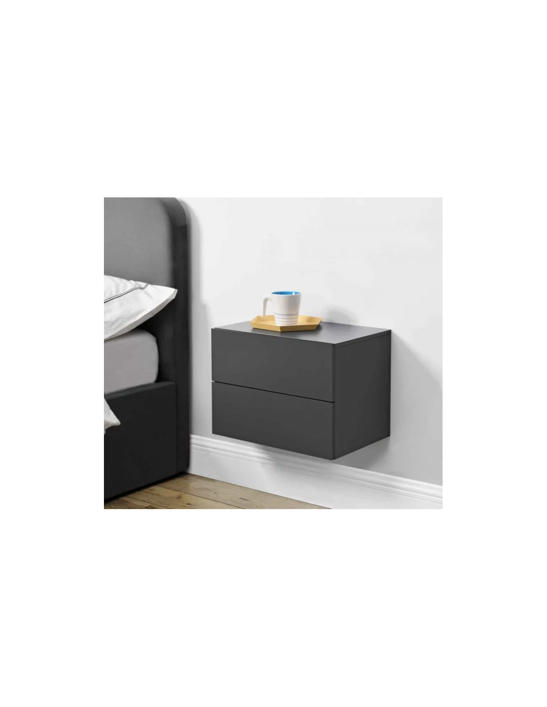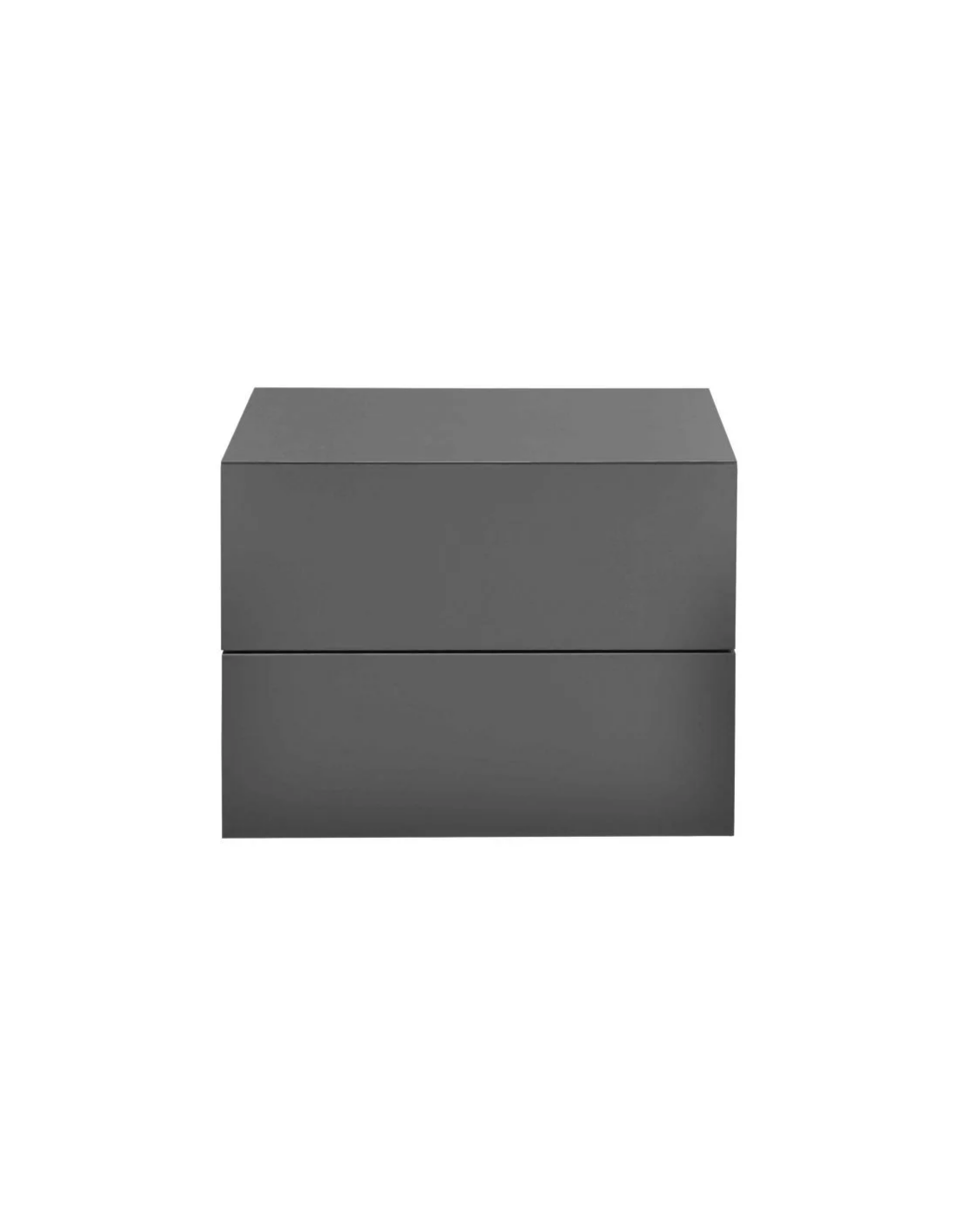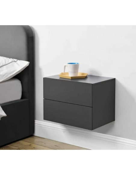 Væghængt sengebord udført i et design af mørkegrå møbelplade. Sengebordet måler 30 cm i højden og 40 x 29 cm i bredde og dybde.